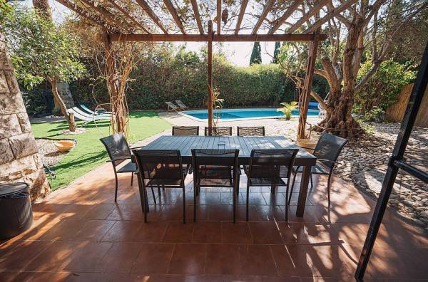 פטיו גדול עם פינת BBQ ופינות ישיבה