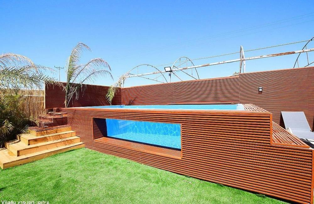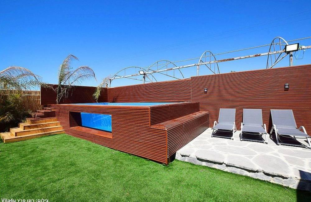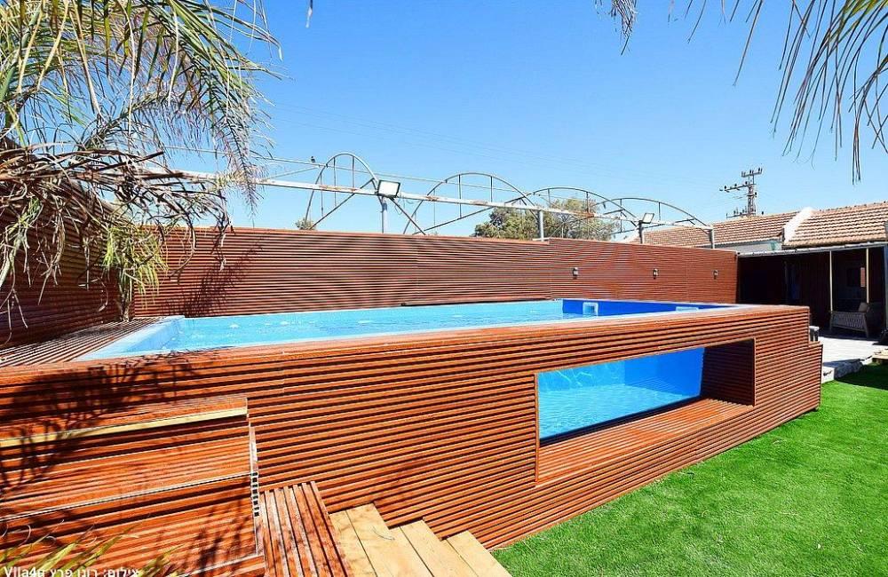מתחם חיצוני קסום בריכה (מחוממת מקורה בחורף) ודופן שקופה