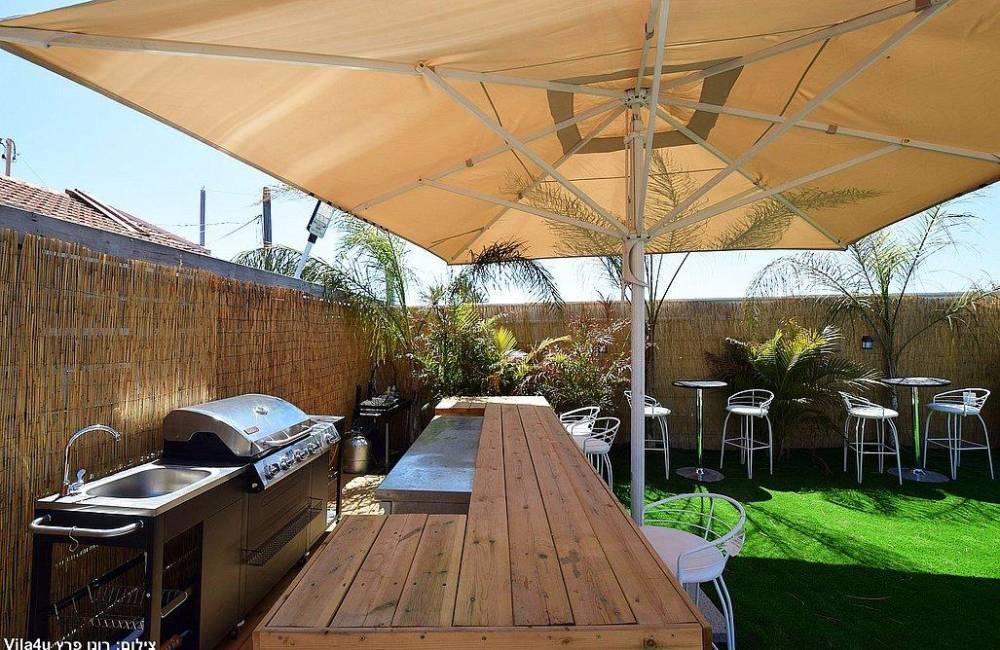 - מטבח חוץ עם עמדת מנגל כפולה