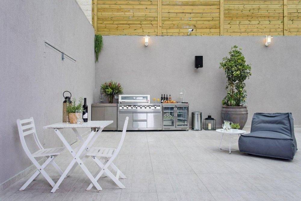 מטבח חיצוני עם מנגל גז ומשטח עבודה