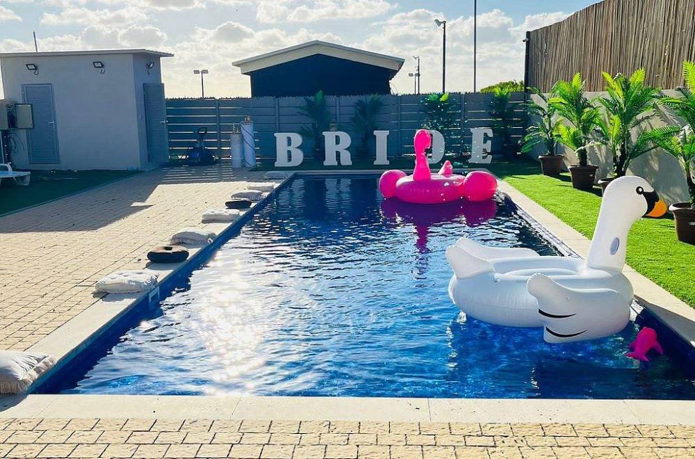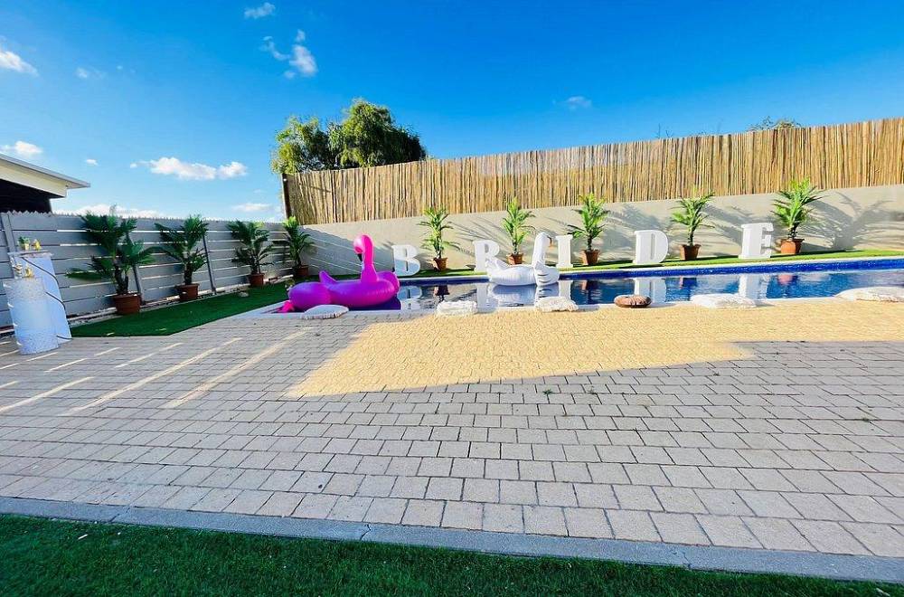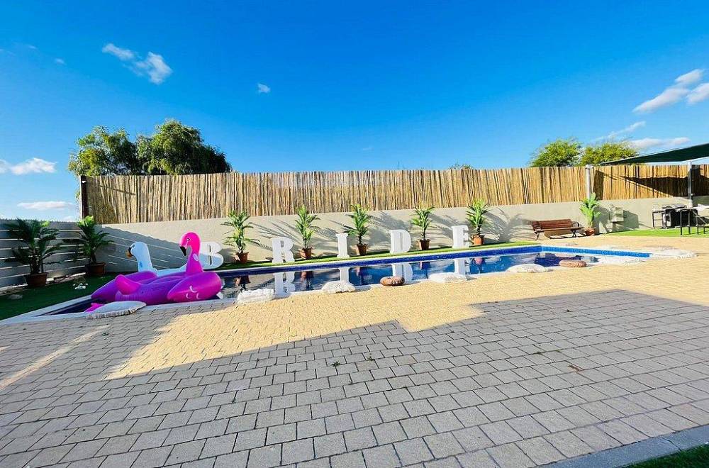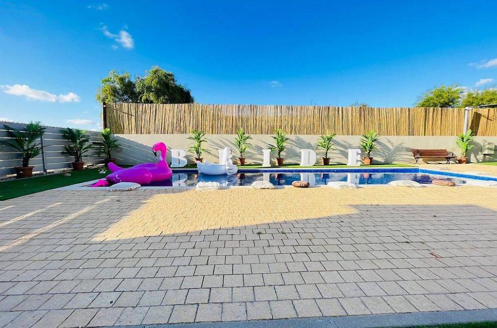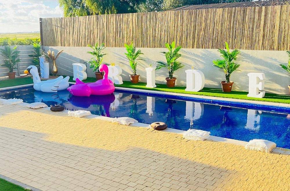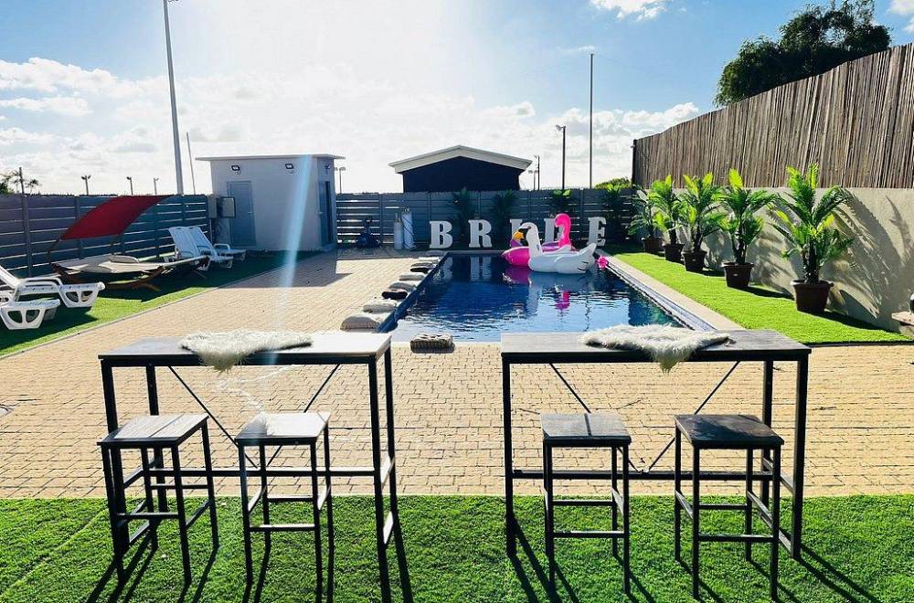 בנוסף, קיים חצר גדולה עם בריכת שחייה (מחוממת, בנוייה ומגודרת בגודל 4.5X12 מטר), ג'קוזי מפנק, פינת מנגל, מקרר גדול, מערכת שמע, חדר רחצה, פינות ישיבה ומיטות שיזוף.