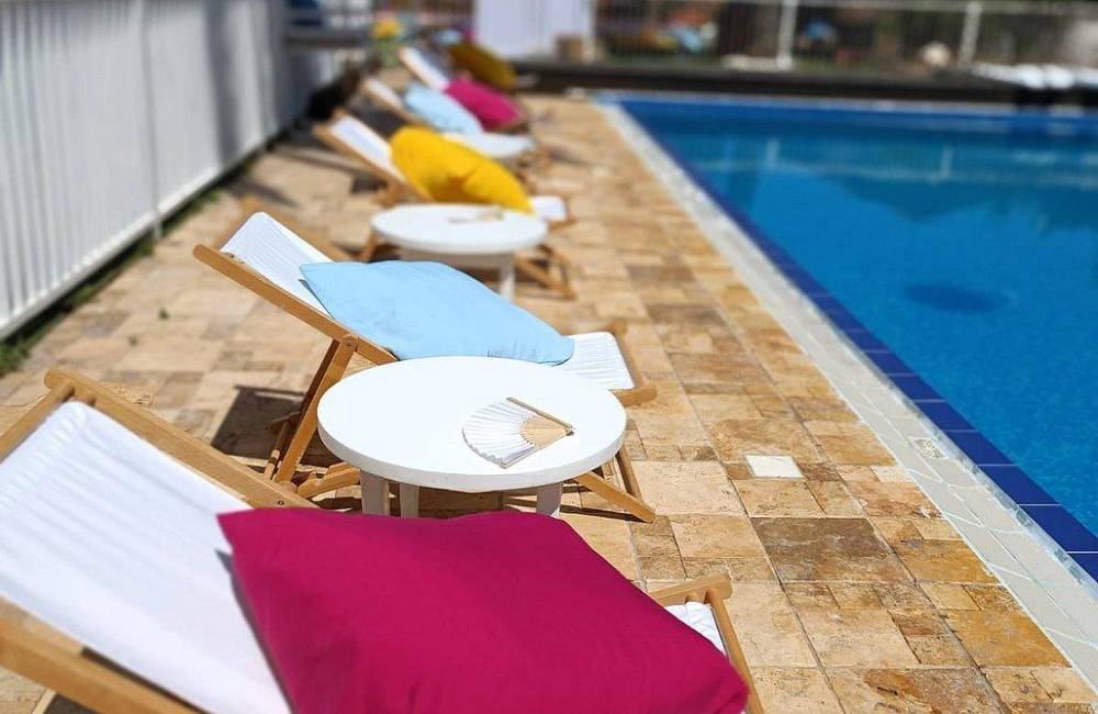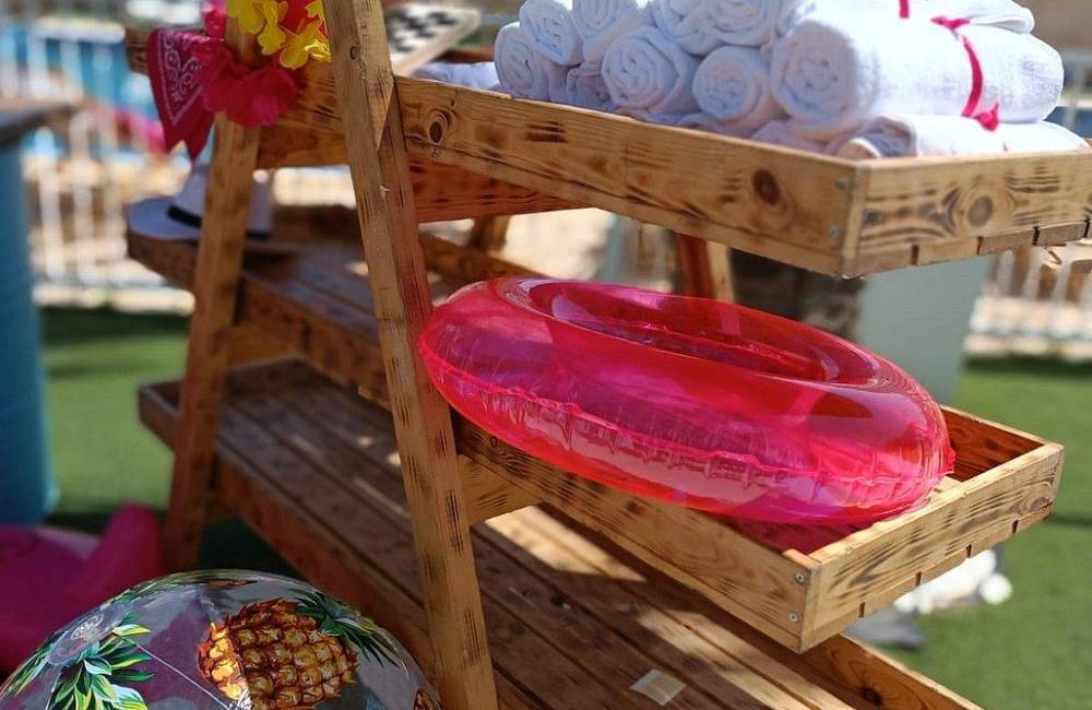 מסביב מיטות שיזוף, שמשיות ומגוון פינות צ'יל אאוט
