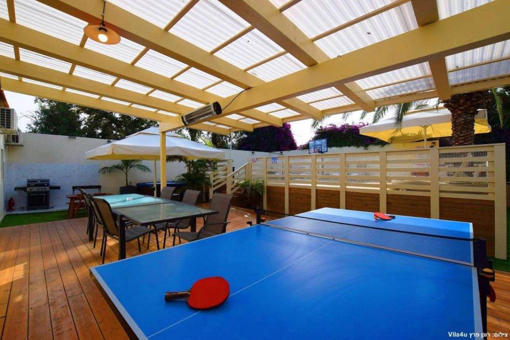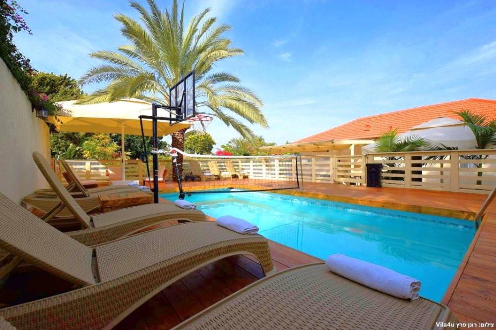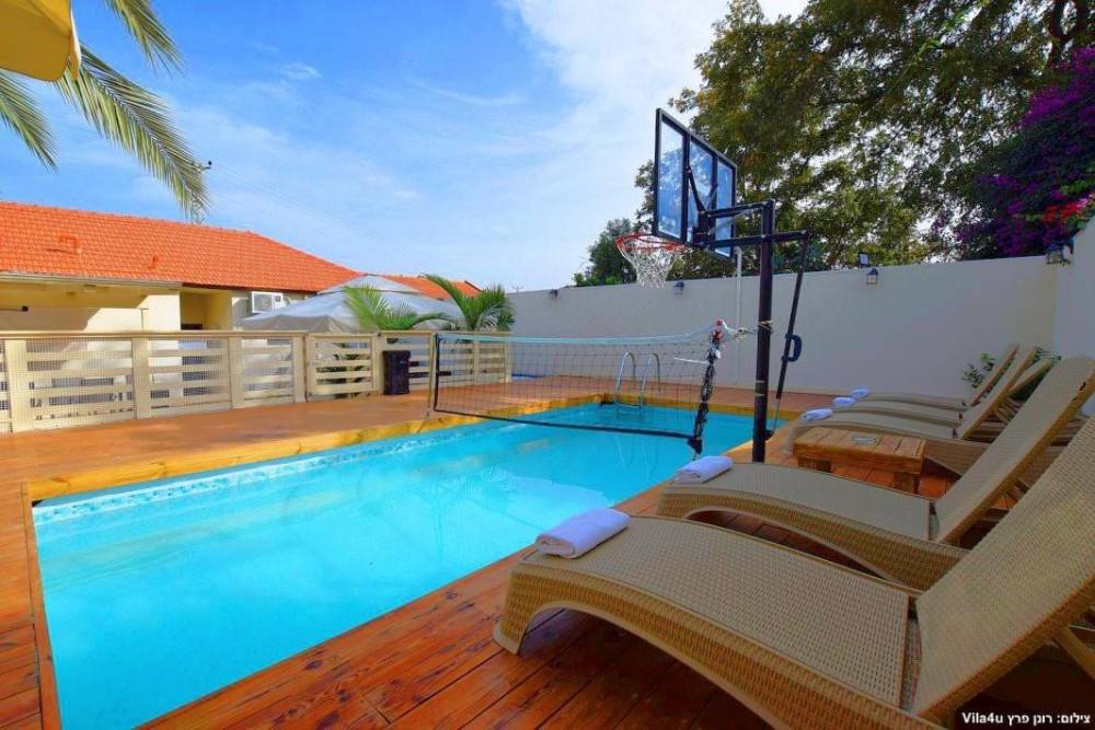 במתחם וילה עם 5 חדרי שינה, בריכה מפנקת (מחוממת בחורף), שטח רחב של מדשאות ירוקות, ריהוט גן, שולחן פינג פונג וכדורגל, פינות ברביקיו ועוד.