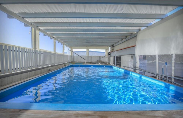 בריכת שחייה בנויה מוארת בגודל 3X5 עומק 1.20 מחוממת מקורה