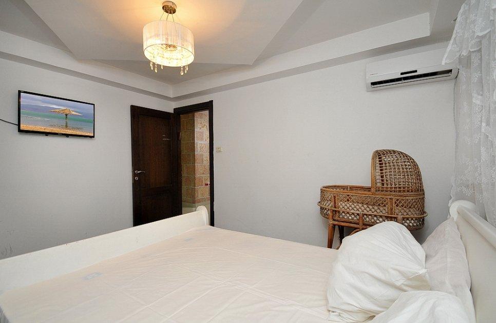 מאובזרים במיטה זוגית עם מצעים נעימים + טלוויזיית lcd וארון