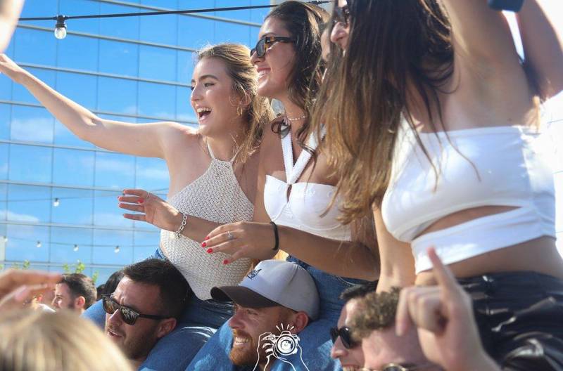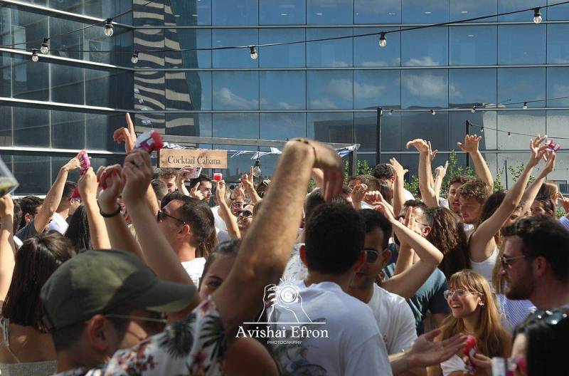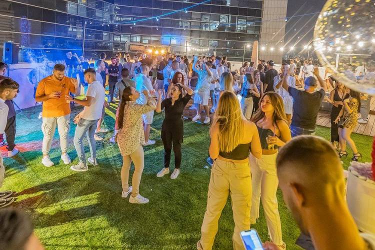 במקום עמדת תקליטן, דשא סינטטי על כל הגג, שירותים, עמדת בר בועטת, עמדת אוכל ובופה לעיני כל הקהל.