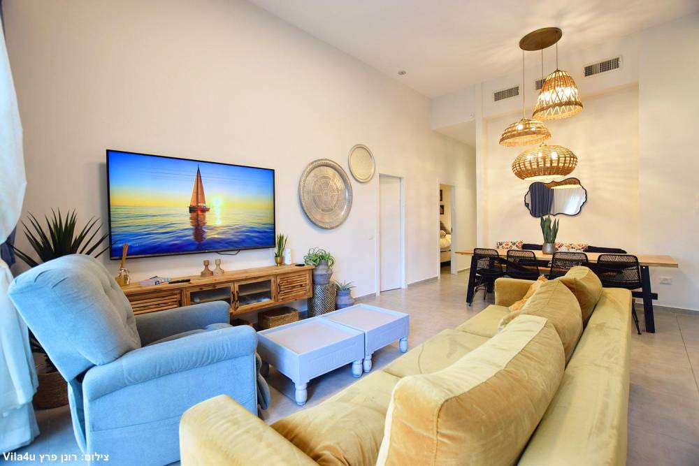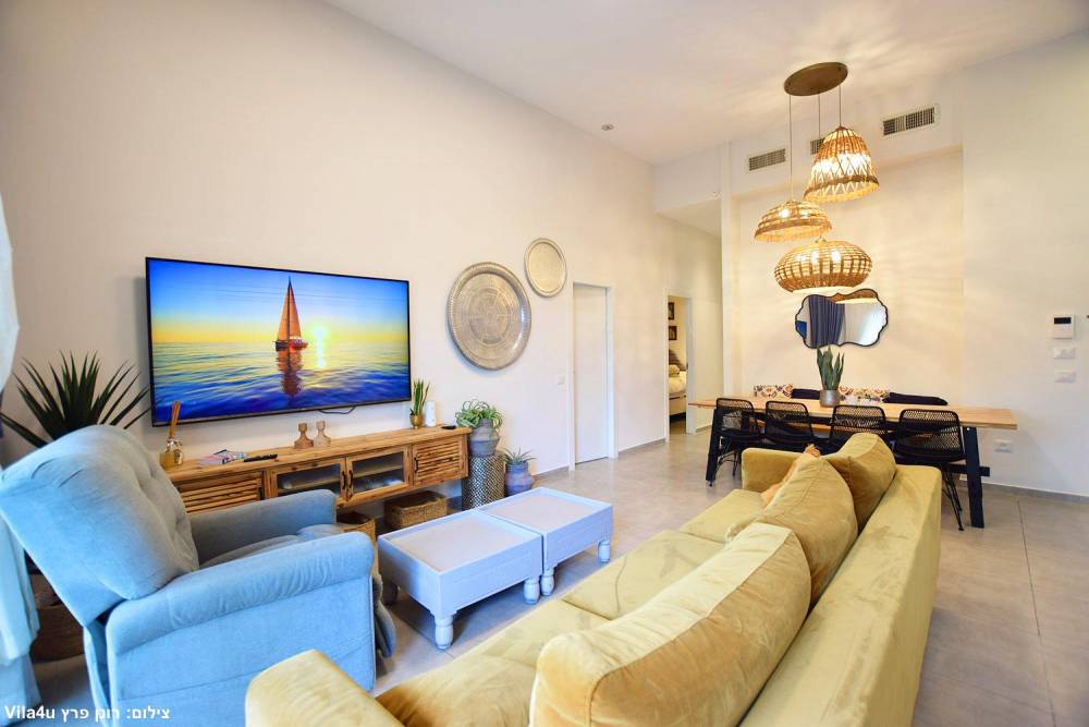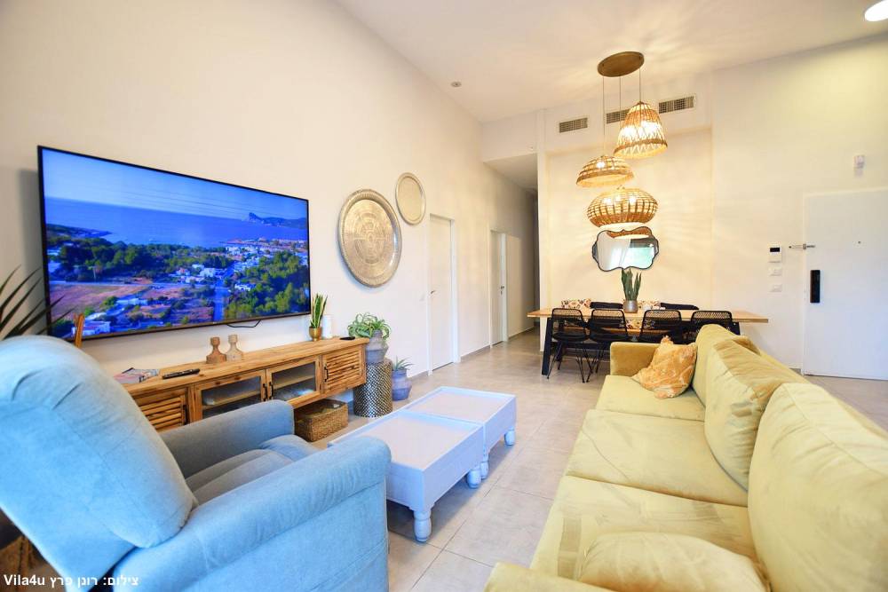 הדירה כוללת סלון מרווח עם טלוויזיה חכמה, פינת אוכל ומטבח גדול ומאובזר. החדרים מצוידים במיטות זוגיות, שידות, טלוויזיות ומיזוג אוויר.