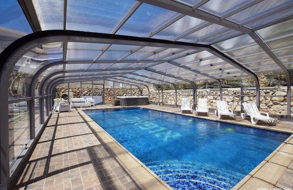 בריכת שחייה ענקית (מחוממת מקורה בחורף) עם רצפת פסיפס
