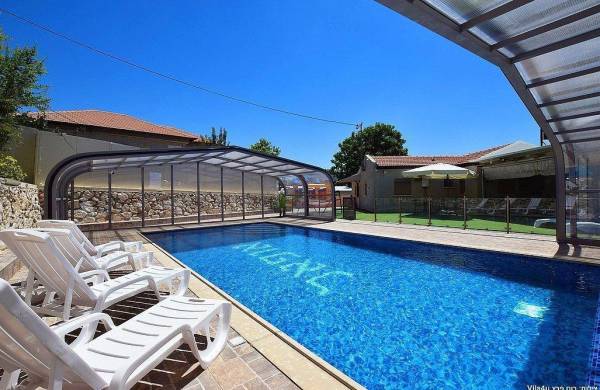 בריכת שחייה ענקית (מחוממת מקורה בחורף) עם רצפת פסיפס