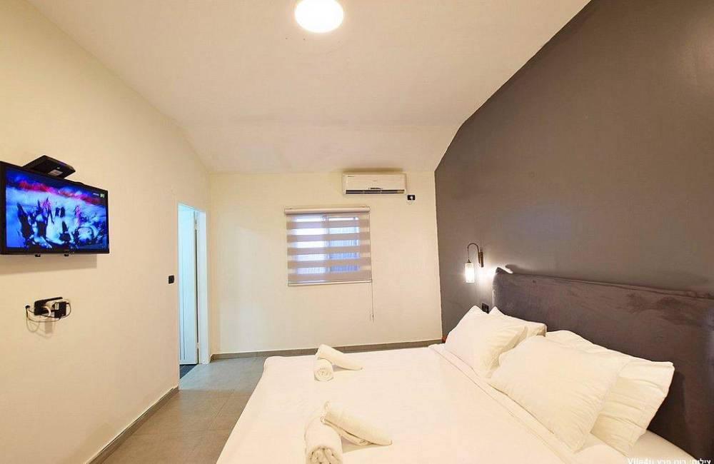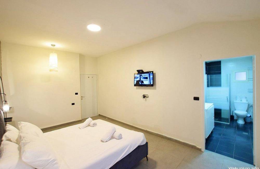 5 חדרי שינה המאובזרים: מיטה זוגית, שידה, מיזוג אוויר ומסך צפייה גדולה מסך 32 אינץ
