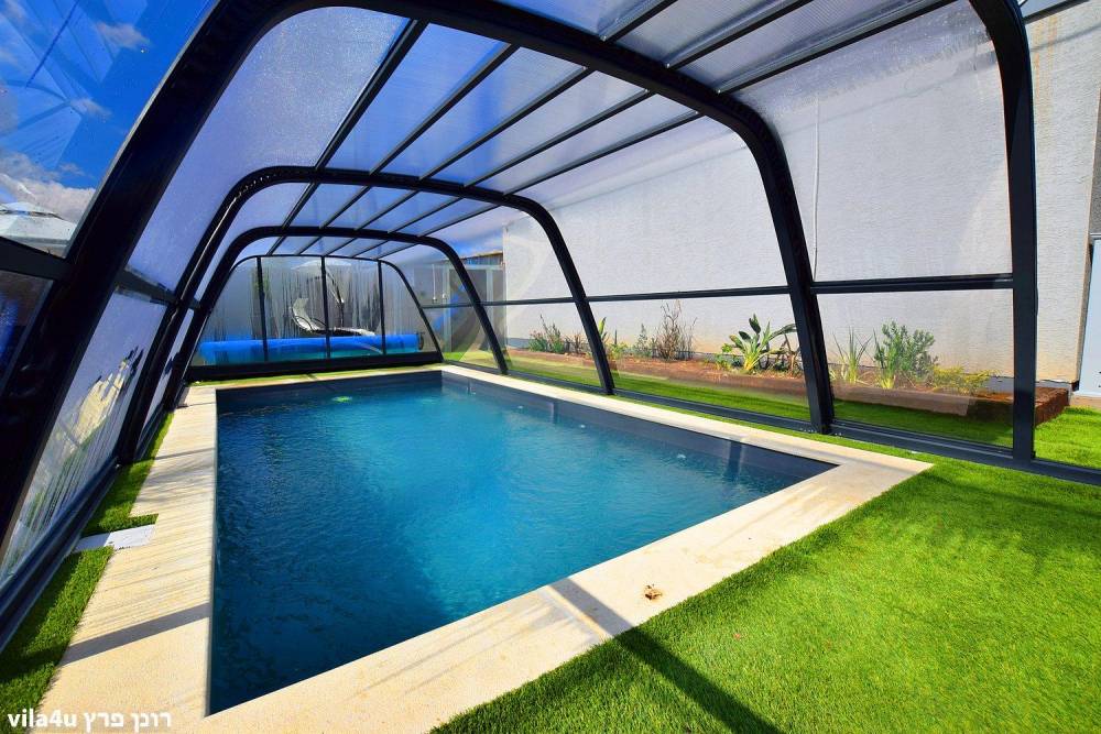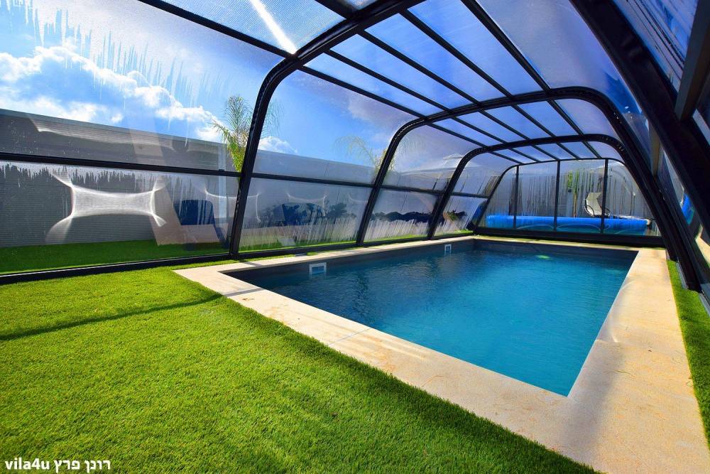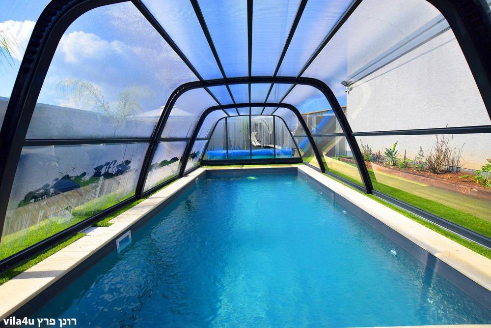 בריכת זרמים צלולה עם תאורה לילית בגודל 7 על 3 בחורף מקורה ומחוממת