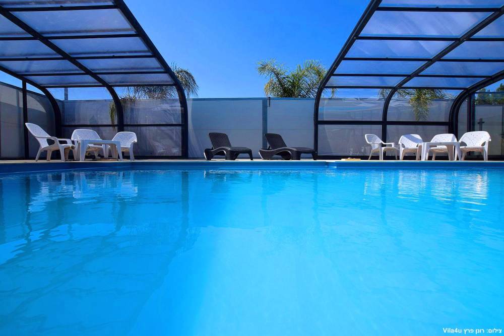 בריכה מחוממת ומקורה עם זרמי מים, גודל הבריכה 9/4.5 מ' עומק 1.40 מ'