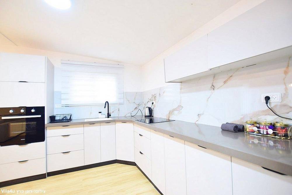 מטבח באבזור מלא: תנור אפיה, כיריים, מקרר, מיקרוגל, בר מים תמי 4, פינת קפה ומכונת אספרסו עם קפסולות