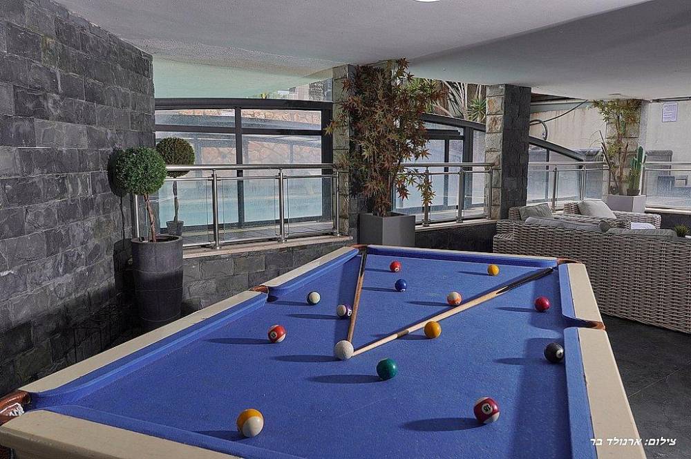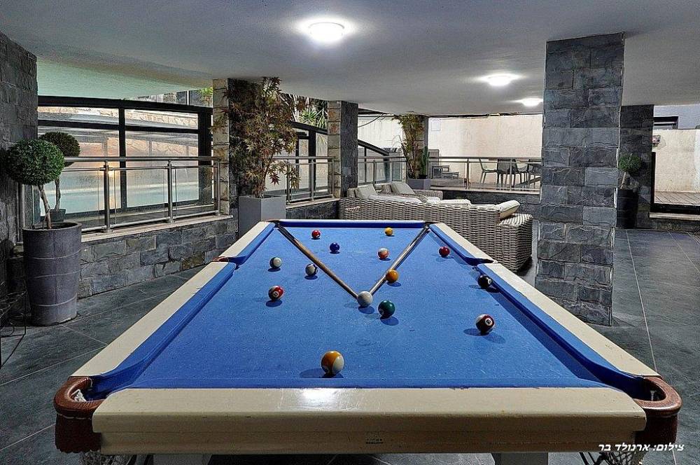 מטבח עם שני מקררים גדולים מסכים גדולים בכל פינה ,שולחן פינגפונג וסנוקר .