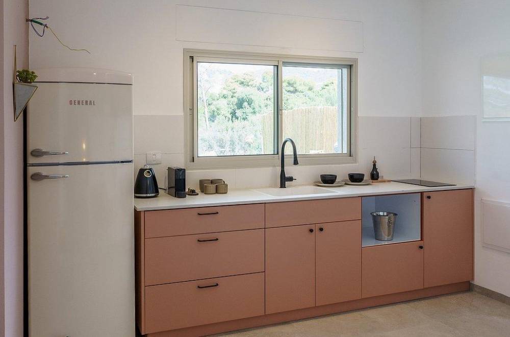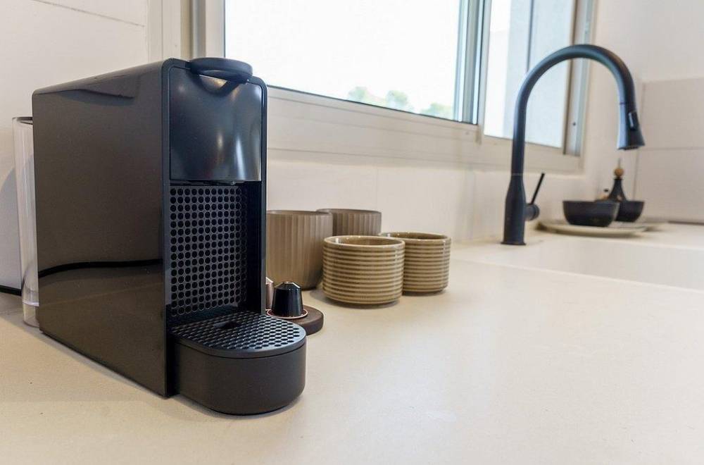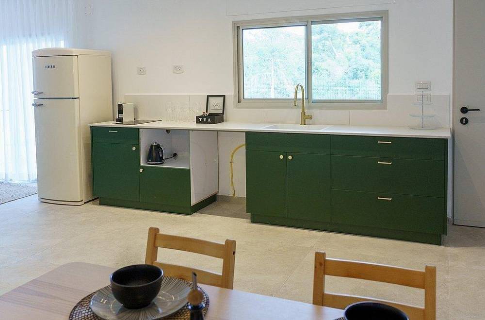 • מטבח מאובזר עם מכונת קפה, מקרר גדול, סירים, כלים וכיריים
