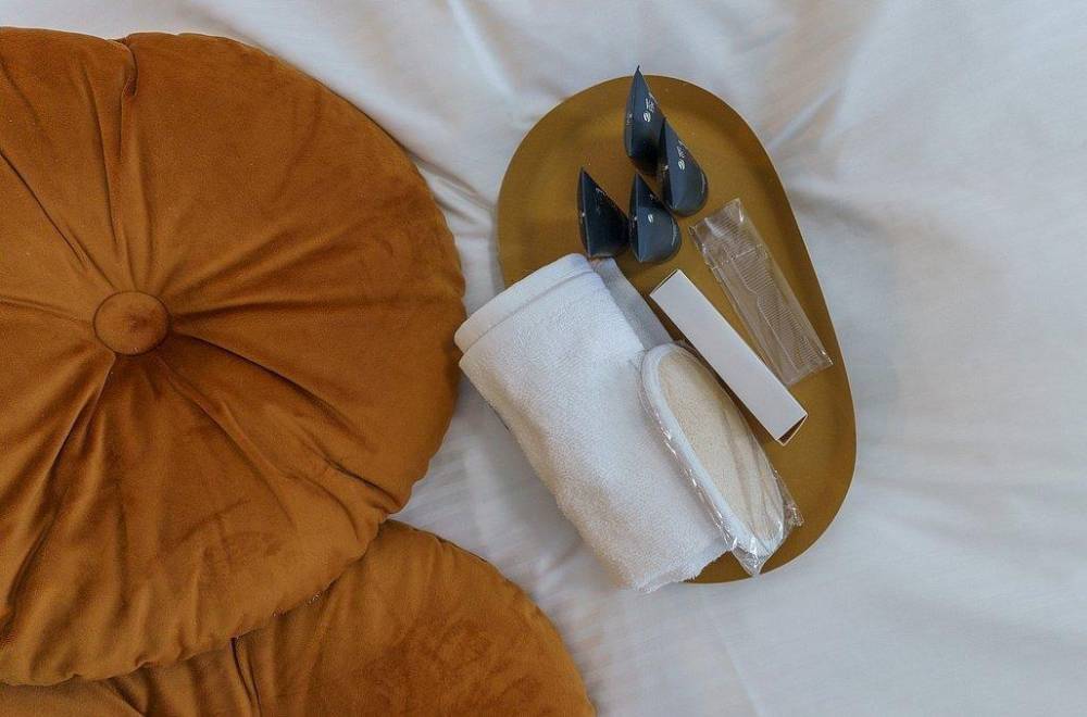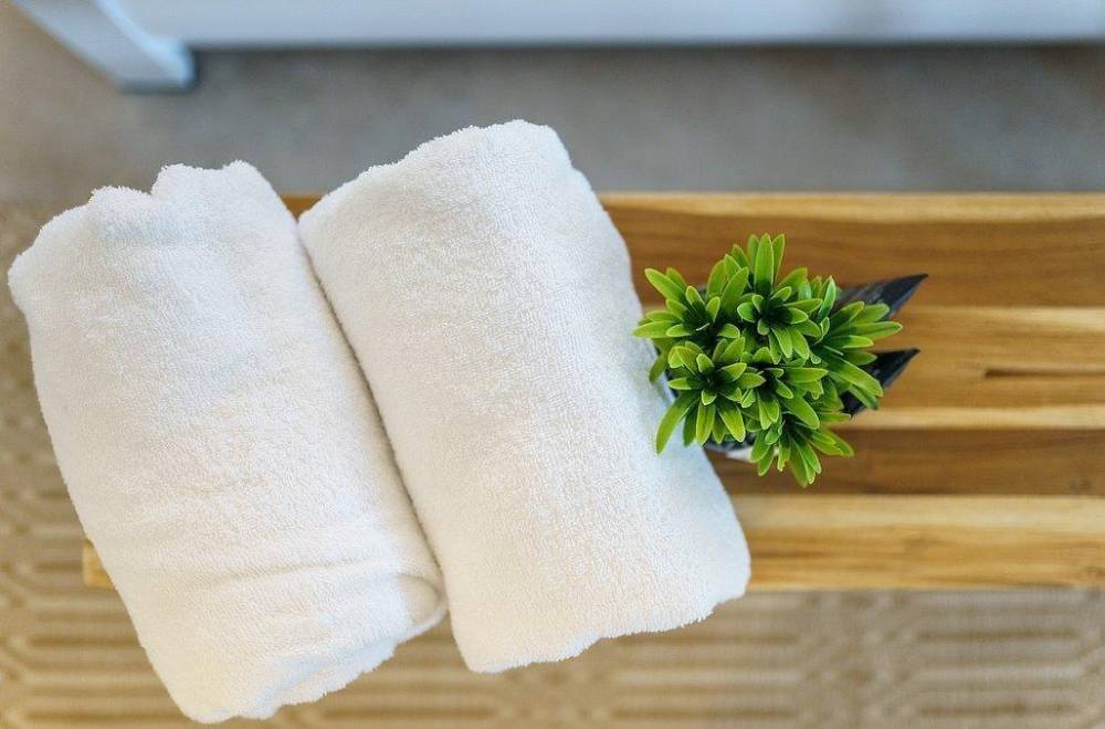 • חדר רחצה עם מגבות, תכשירי רחצה וקרם גוף