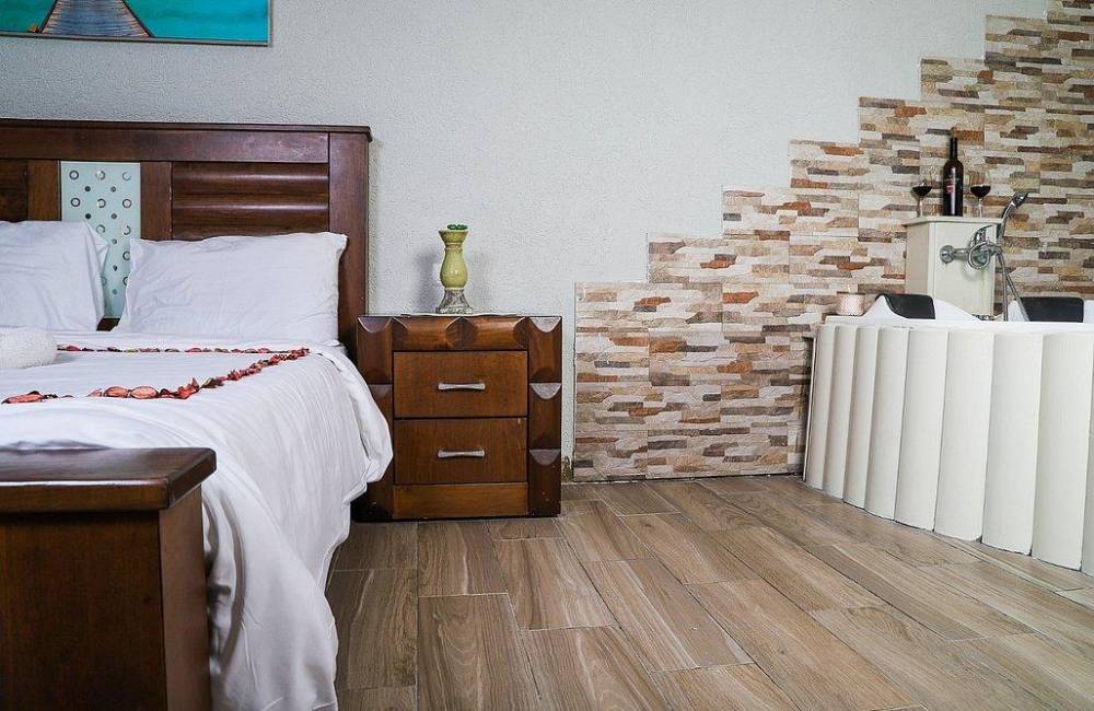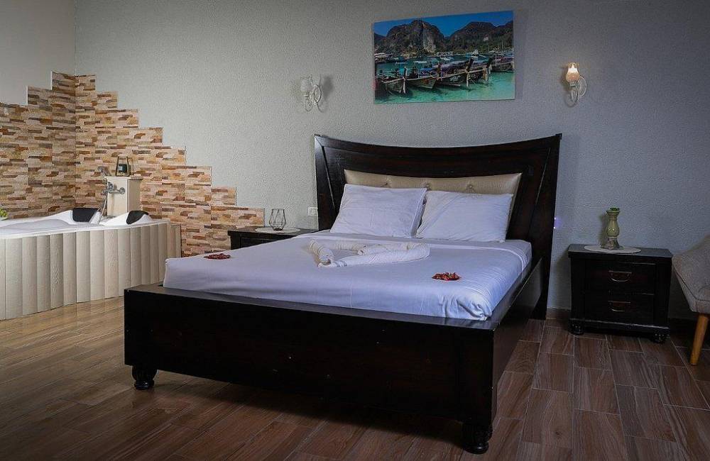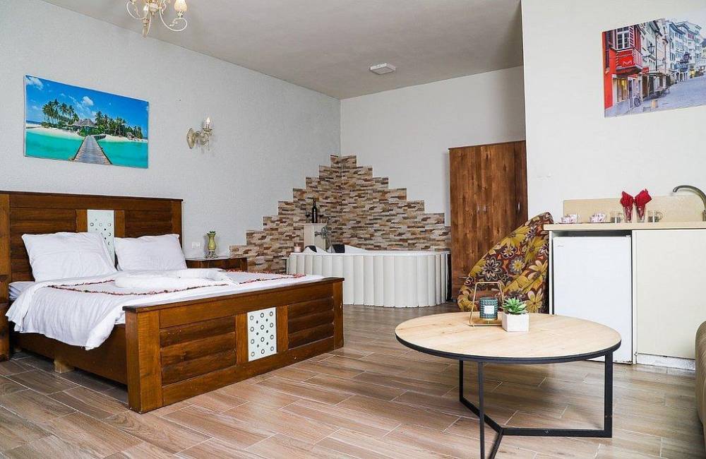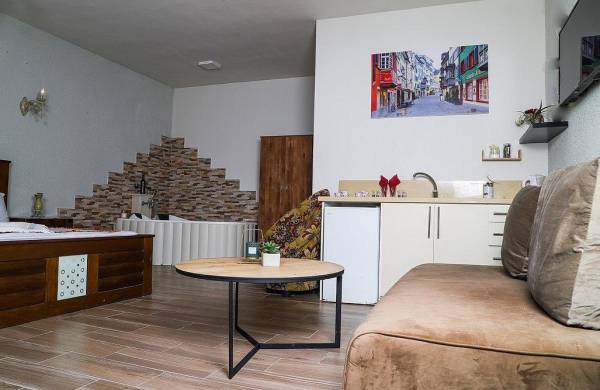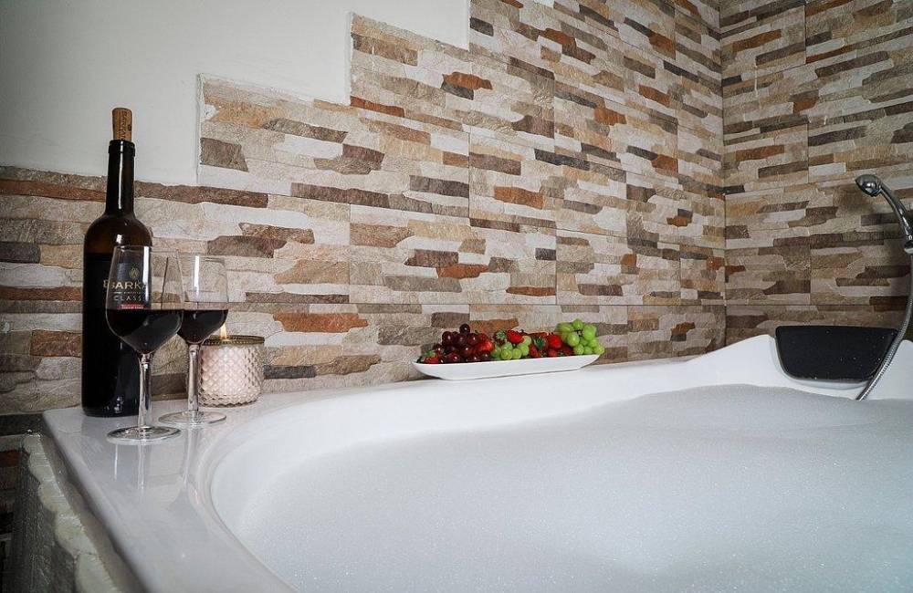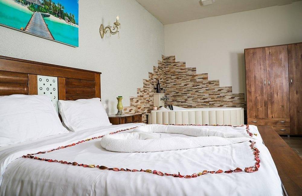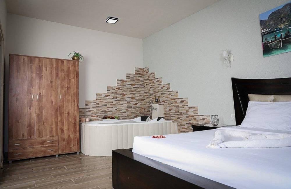 חדר רחצה עם מקלחת ושירותים, ג'קוזי מפנק, ספה נפתחת ומיטת יחיד