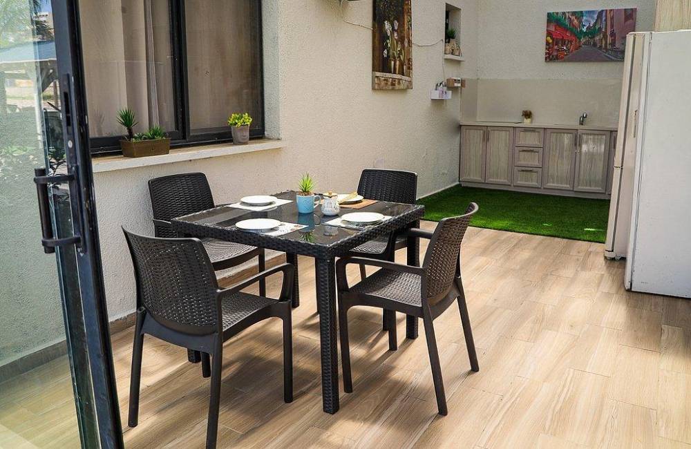 מטבח חוץ הכולל כיור, משטח עבודה פינת מנגל