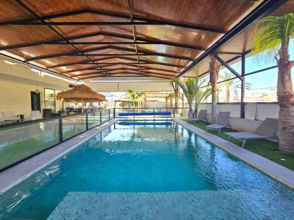 בריכת שחייה מחוממת ומקורה בגודל 5×10 מטר עם בריכת ילדים