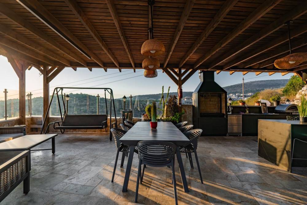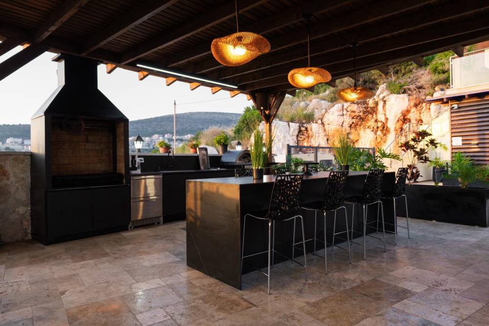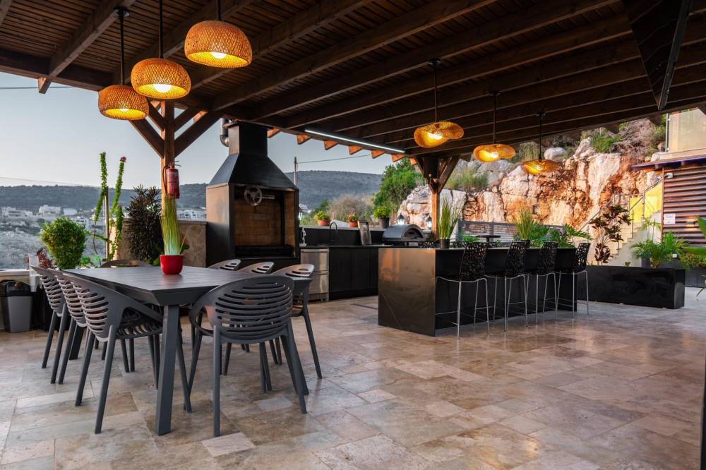 פינת מנגל עם מטבח חיצוני מחומם מקורה