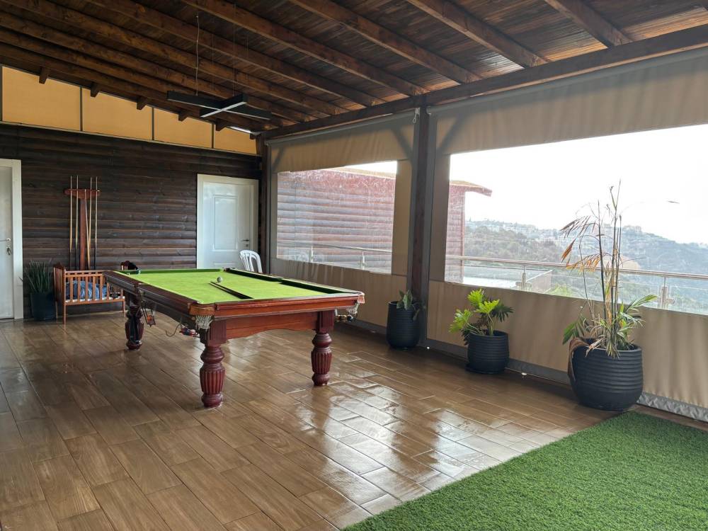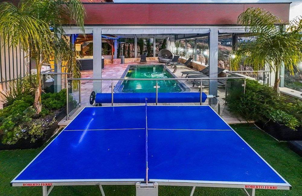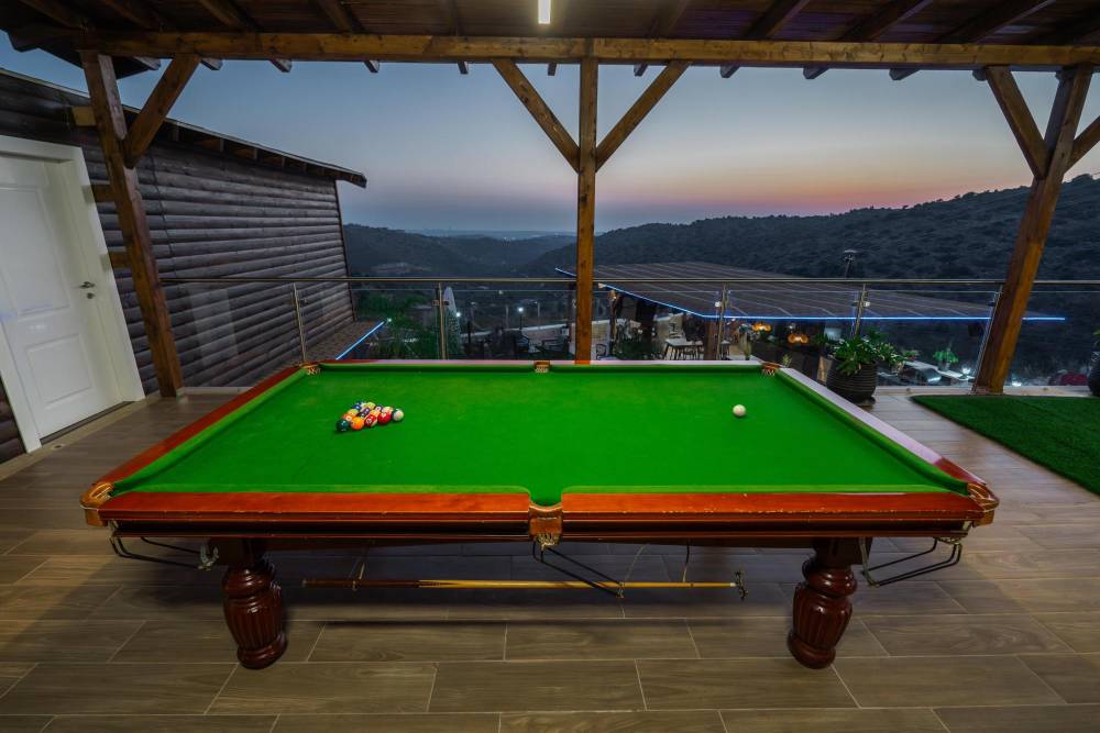 מתחם משחקים מחומם ומקורה הכולל שולחן פינג פונג, שולחן סנוקר ושולחן כדורגל