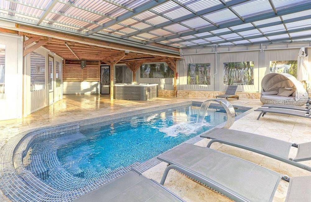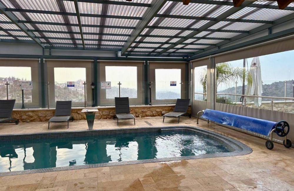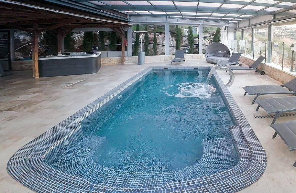 בריכת שחייה צלולה מחוממת ומקורה