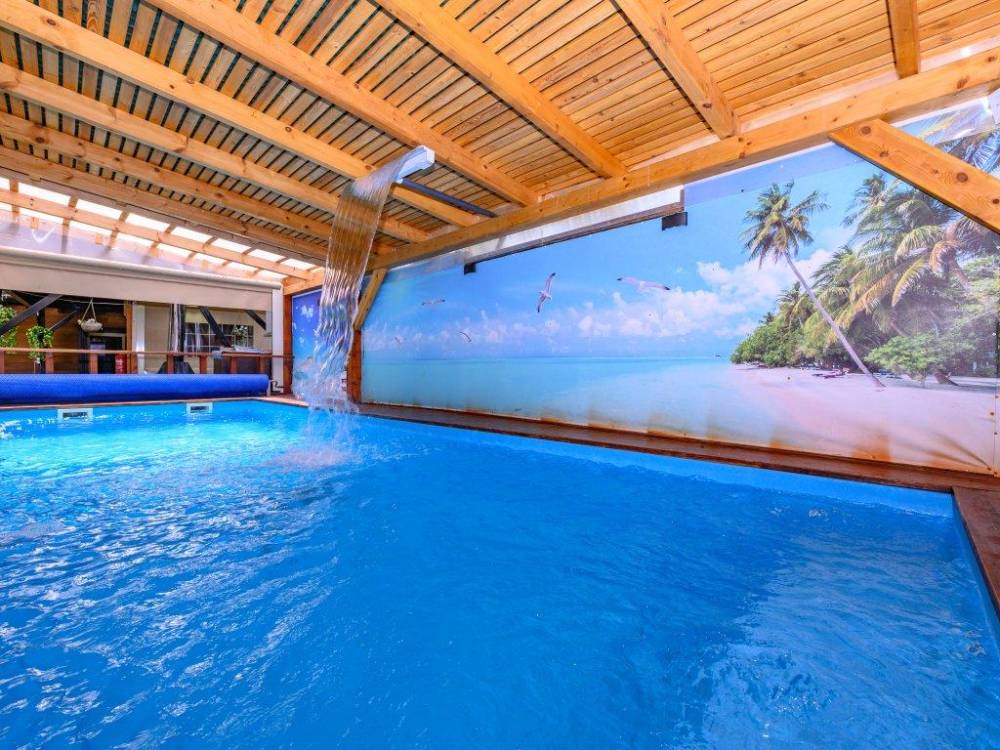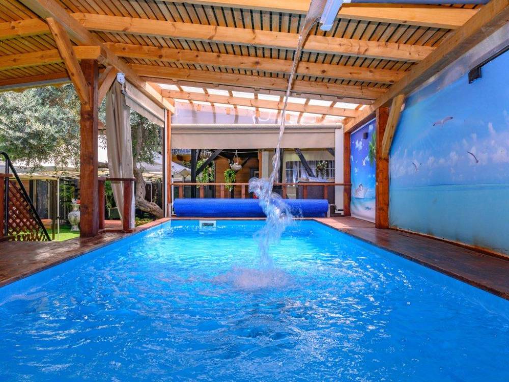 בריכת שחייה צלולה, מחוממת ומקורה בגודל 5X2.5