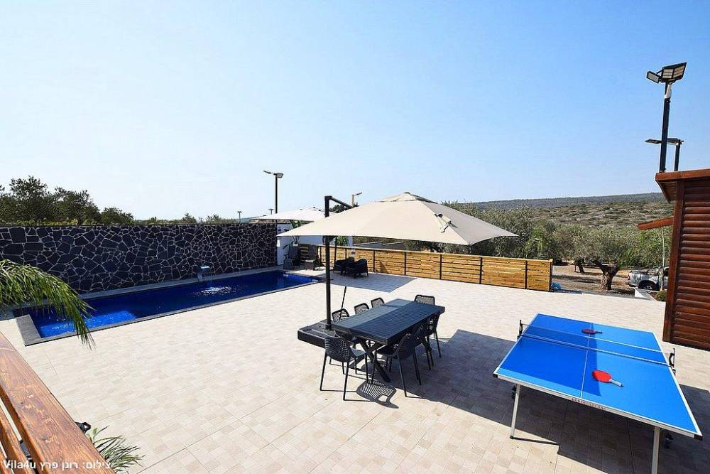 באחוזה מחכות לכם שלוש סוויטות מפנקות בעיצוב כפרי-מודרני, כל אחת מהן כוללת חדר רחצה פרטי לנוחות מושלמת ותחושת פרטיות מקסימלית. בחצר המטופחת תמצאו בריכת שחייה גדולה ונעימה, מוקפת מיטות שיזוף ופינות ישיבה באווירה רגועה ומרגיעה, לרשותכם גם מטבח חוץ מאובזר לבישול ואירוח, עמדת ברביקיו איכותית, שולחן טניס, פינת גריל ועוד.