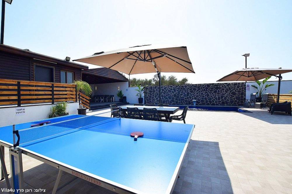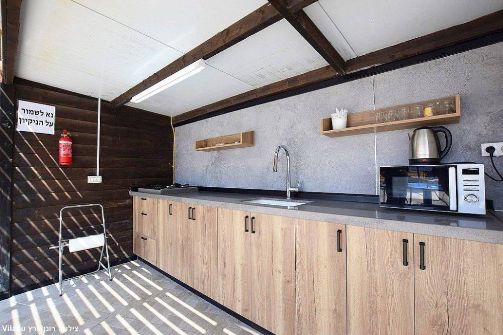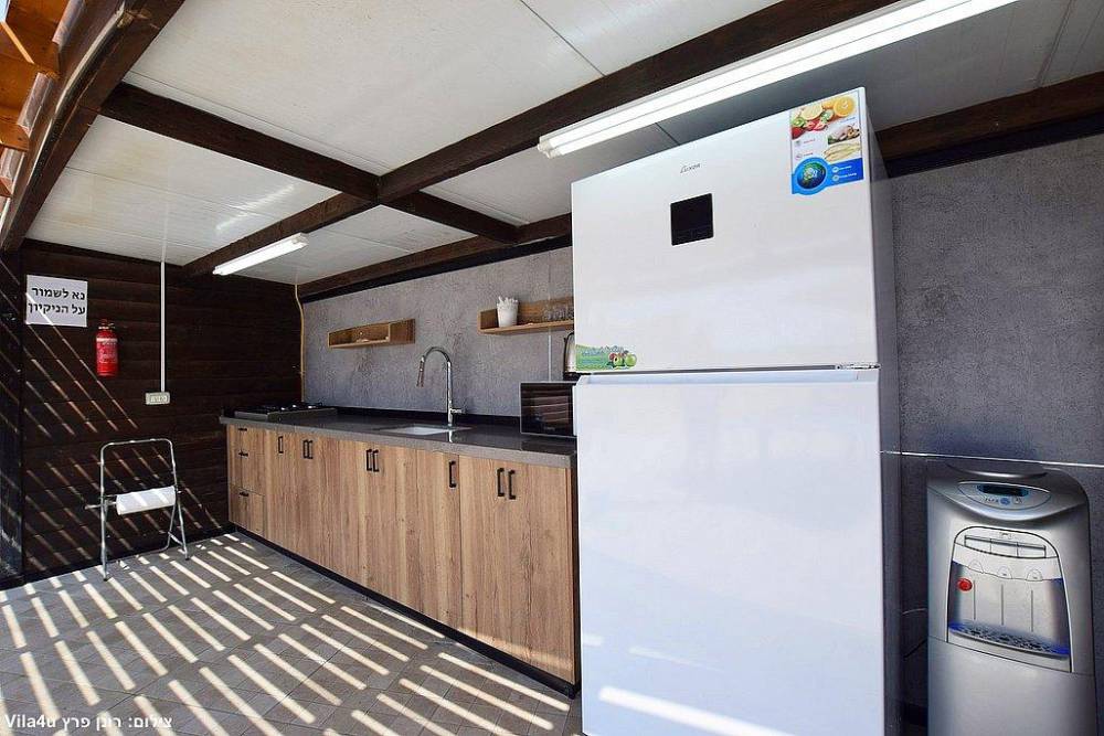 - פינת ברביקיו הכוללת מטבח חיצוני מאובזר ובו: מקרר, מקפיא, כיור, כיריים גז, מיקרוגל, קומקום חשמלי, פינת קפה ועוד
