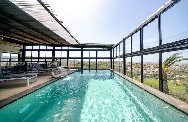 בריכת שחייה מחוממת בחורף, בגודל 8X4 עם מפל מים