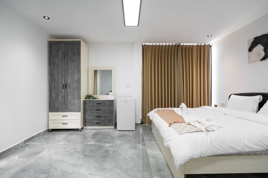 מיטה זוגית עם מזרון אורטופדי, ארון בגדים, שירותים ומקלחת פרטיים, ספה נפתחת למיטה זוגית