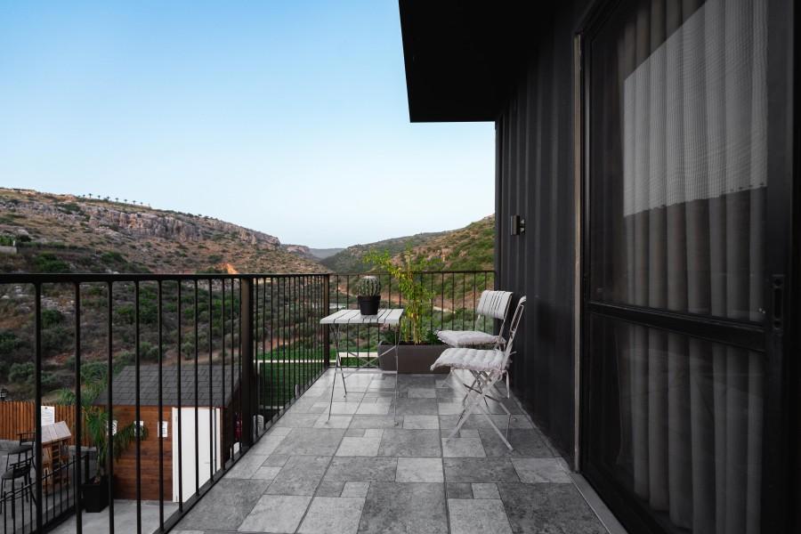 מרפסת פרטית עם שולחן וכיסאות