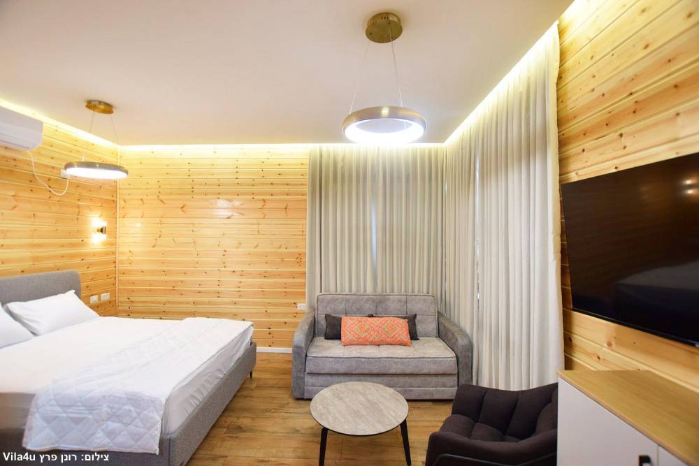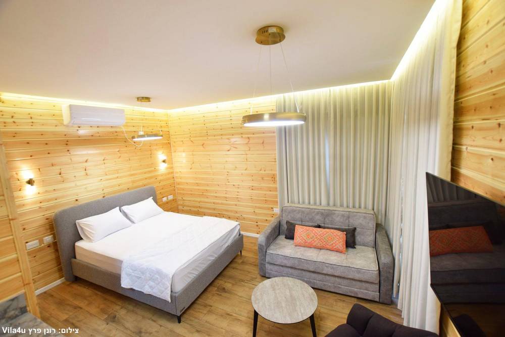 בכל בקתה תוכלו להנות מחדר רחצה מאובזר, מיטה זוגית גדולה, חדר ילדים, מטבחון, טלווזיה עם חיבור לערוצים ומיזוג אוויר