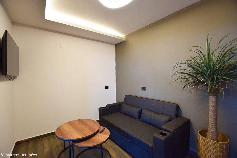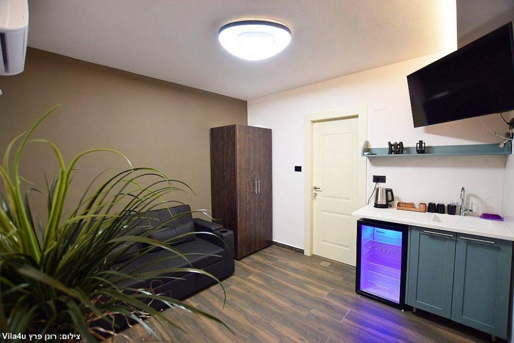 מטבחון מאובזר, סלון קטן, וספה נפתחת לכל סוויטה