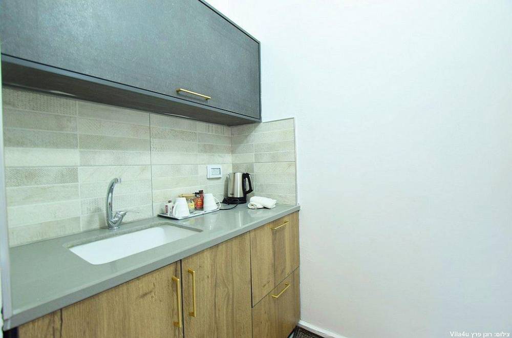 מטבח מאובזר קומפלט הכולל מקרר, תנור אפייה, כיריים גז, תמי 4, מכונת אספרסו, מיקרוגל, קומקום, כלי אוכל והגשה
