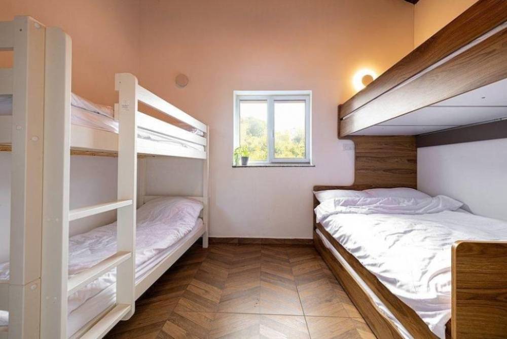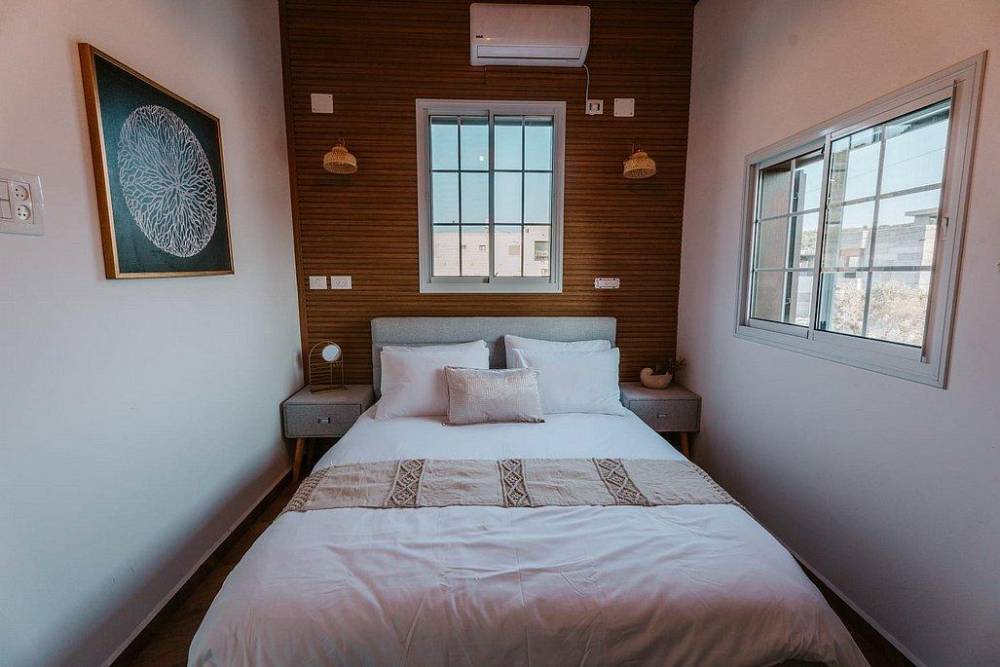 - בחדר הילדים: 2 מיטות קומתיים, ארונות ושידות לאחסון, מסך טלוויזיה ומיזוג אוויר - מתאים ללינה עד 6 אורחים.