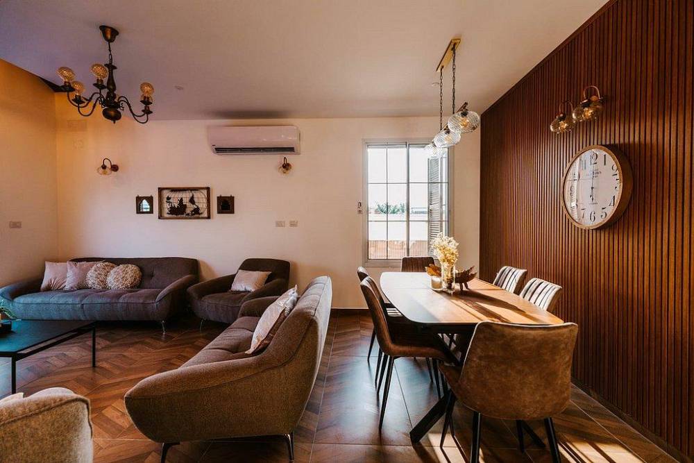 סלון רחב ונעים עם טלוויזיה חכמה, ומערכת ישיבה מפנקת