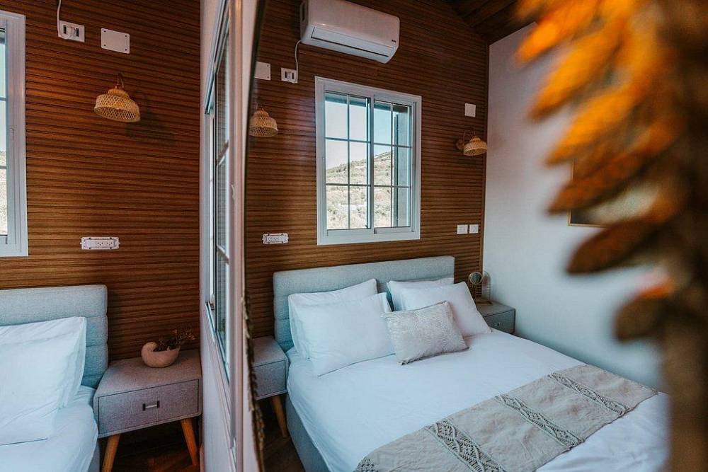 - בכל חדר: מיטה זוגית, שידות לאחסון, ארונות לאחסון, מסך טלוויזיה, מיזוג אוויר.