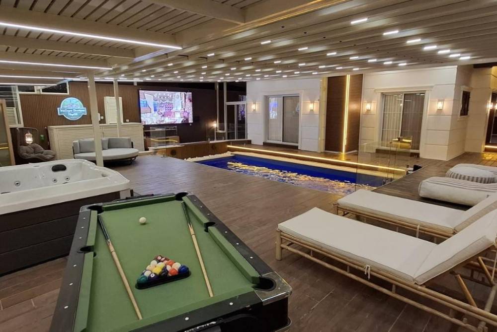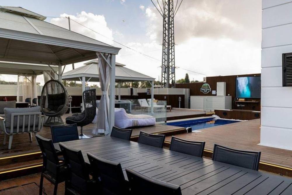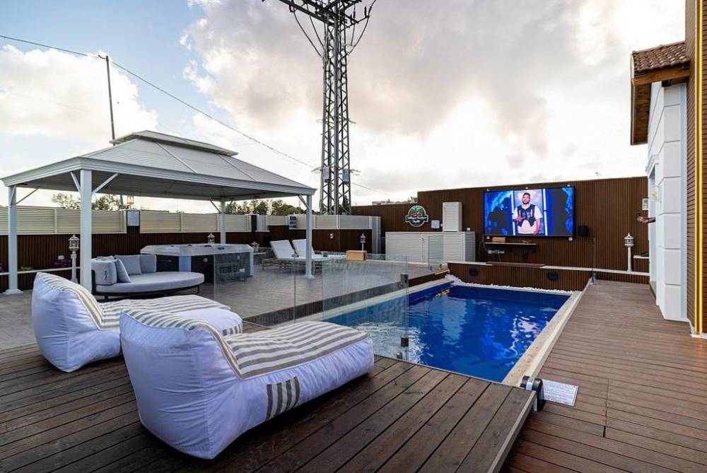 - מסך טלוויזיה ענק במתחם הבריכה הכולל פלייסטיישן