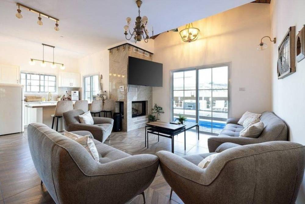 אורחינו ייהנו מ4 חדרי שינה מרווחים מתוכם חדר ילדים, סלון ענק עם טלויזיה חכמה, מטבח גדול ומאובזר, חצר עצומה ומרשימה עם פינות ישיבה מוצלות, ריהוט גן יוקרתי, וכמובן בריכת שחייה פרטית ג'קוזי, שולחנות משחק, פינות ישיבה להירגע, ליהנות מהשמש והאוויר הצלול של הגליל.