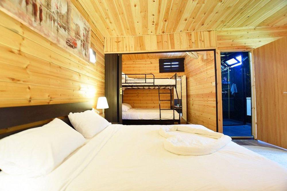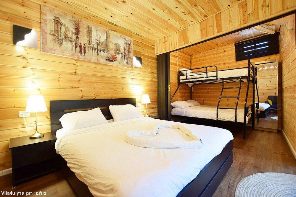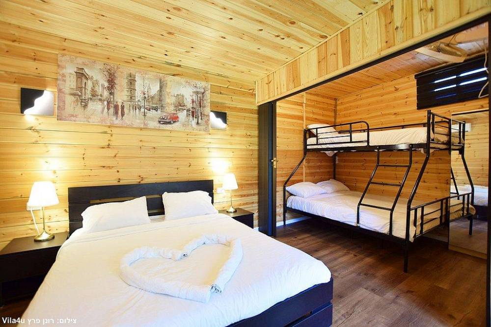 2 חדרי שינה לכל בקתה, מתוכם חדר ילדים עם מיטות קומותיים