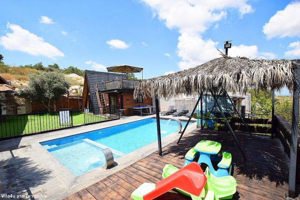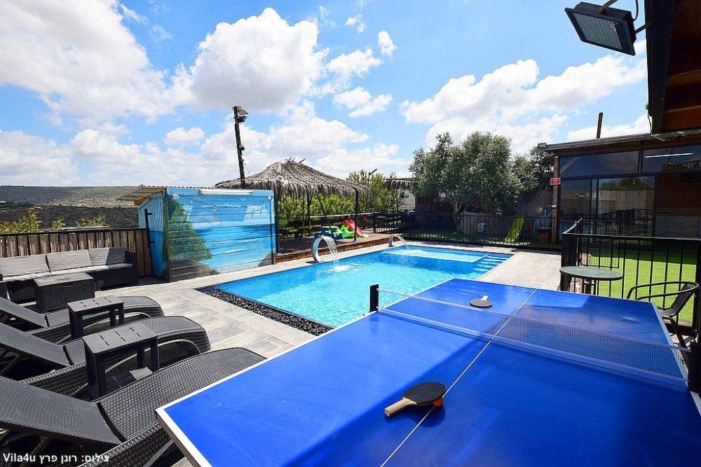 בריכת שחייה מחוממת ומקורה, פינות ישיבה מפנקות, עמדת גריל איכותית ומשחקי שולחן להנאה של כל המשפחה.