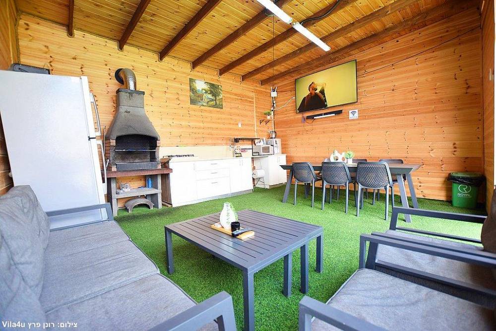 - כמו כן במתחם המקורה בנוסף יש פינת אוכל, פינת גריל הכוללת מנגל גחלים, מערכת ישיבה ומסך טלויזיה נוסף.