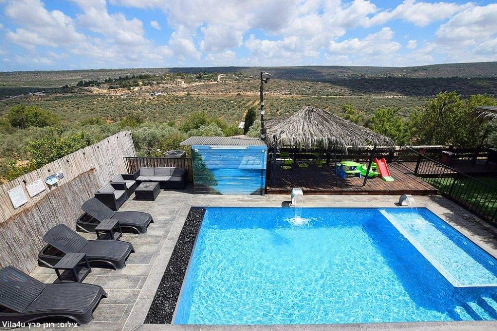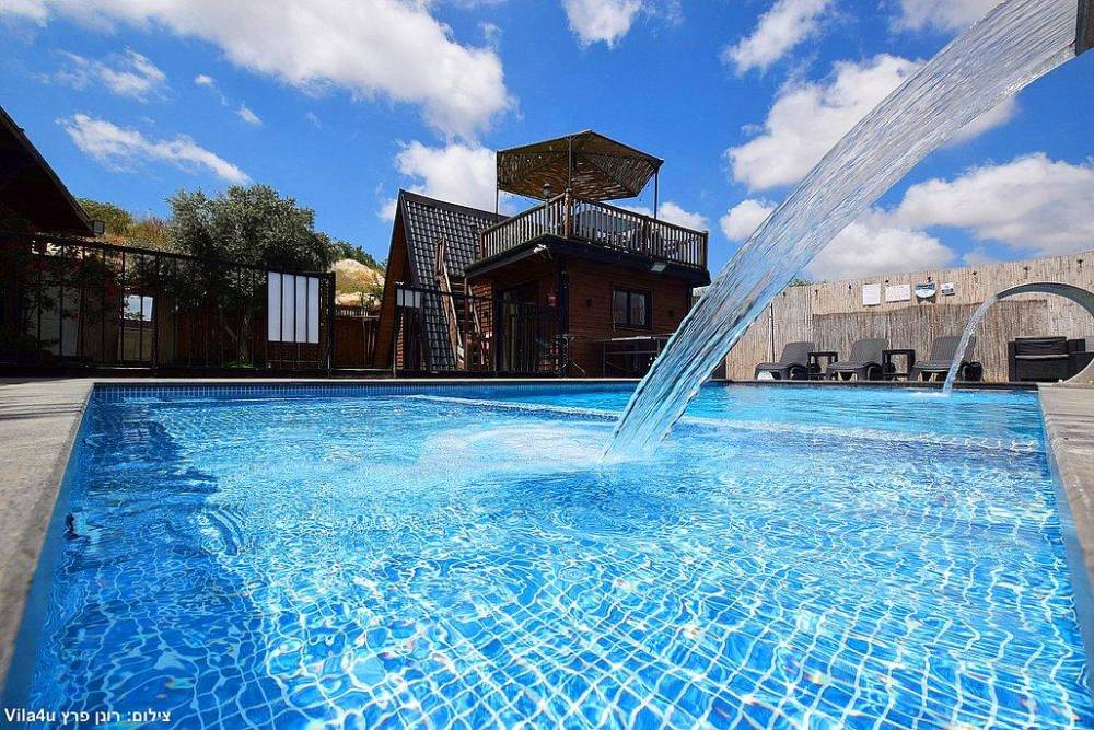 - בריכת שחיה מחוממת מקורה צלולה גדולה אל מול הנוף בגודל 4X8 הכוללת מפל מים ובריכת ילדים קטנה בתוכה.