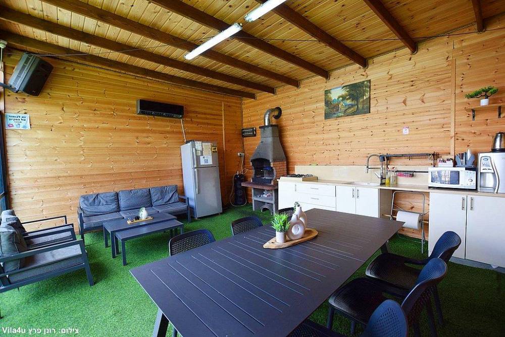 - מתחם מקורה וממוזג המכיל מטבח חוץ מאובזר ובו: מקרר, מקפיא, כיריים גז, בר מים, פינת קפה ותה.