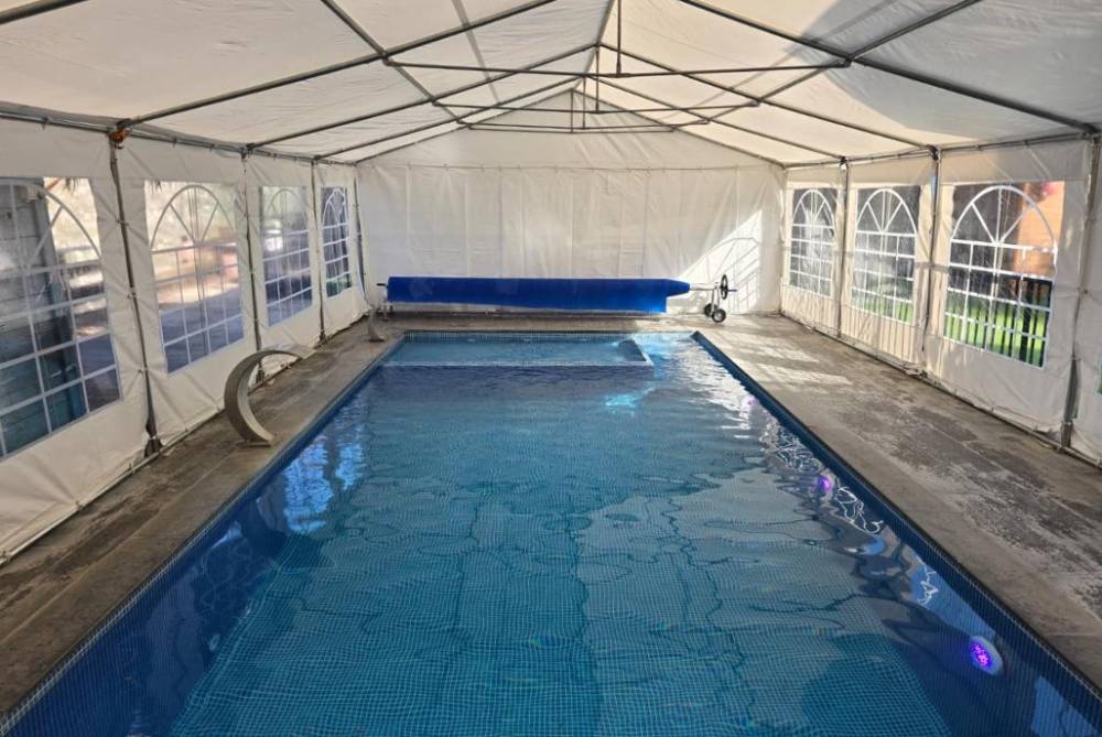 בריכת שחייה מחוממת מקורה עם מפל מים, ובריכת ילדים 4X8