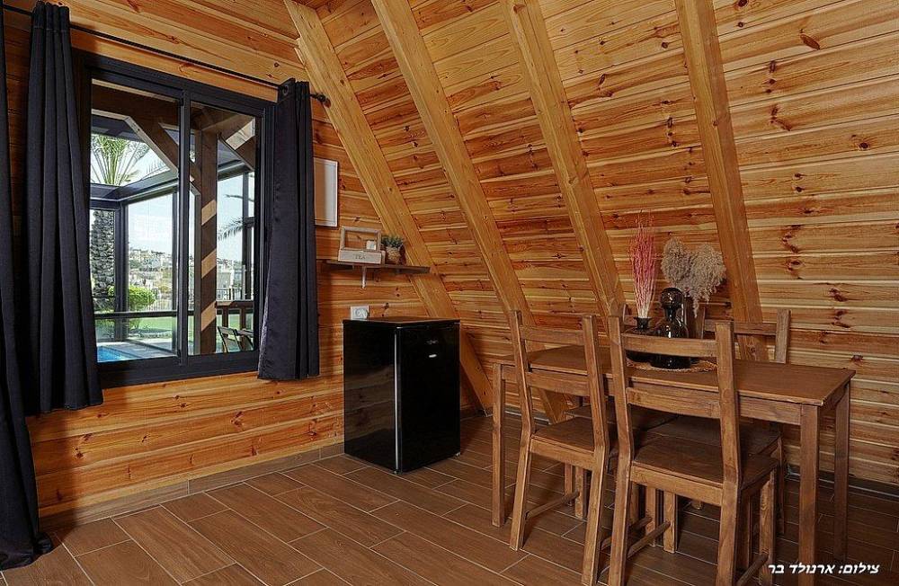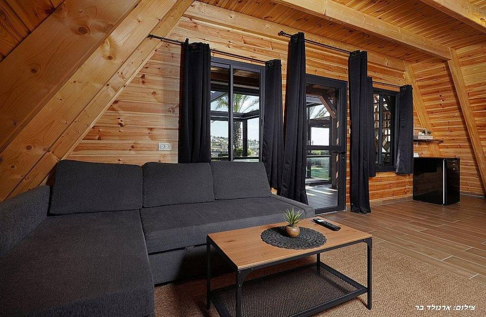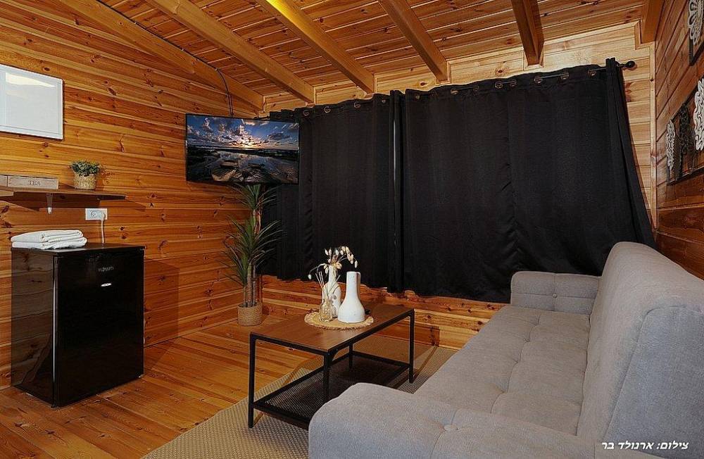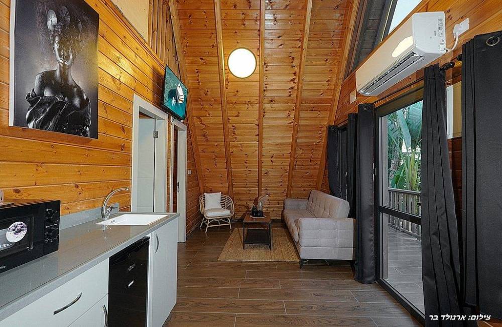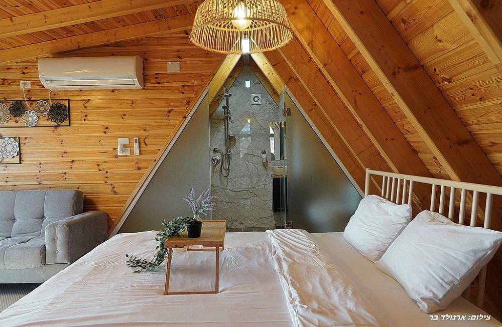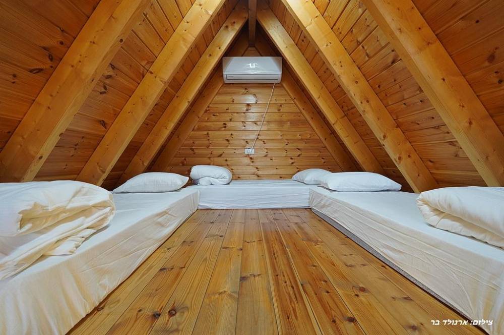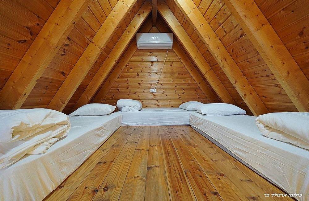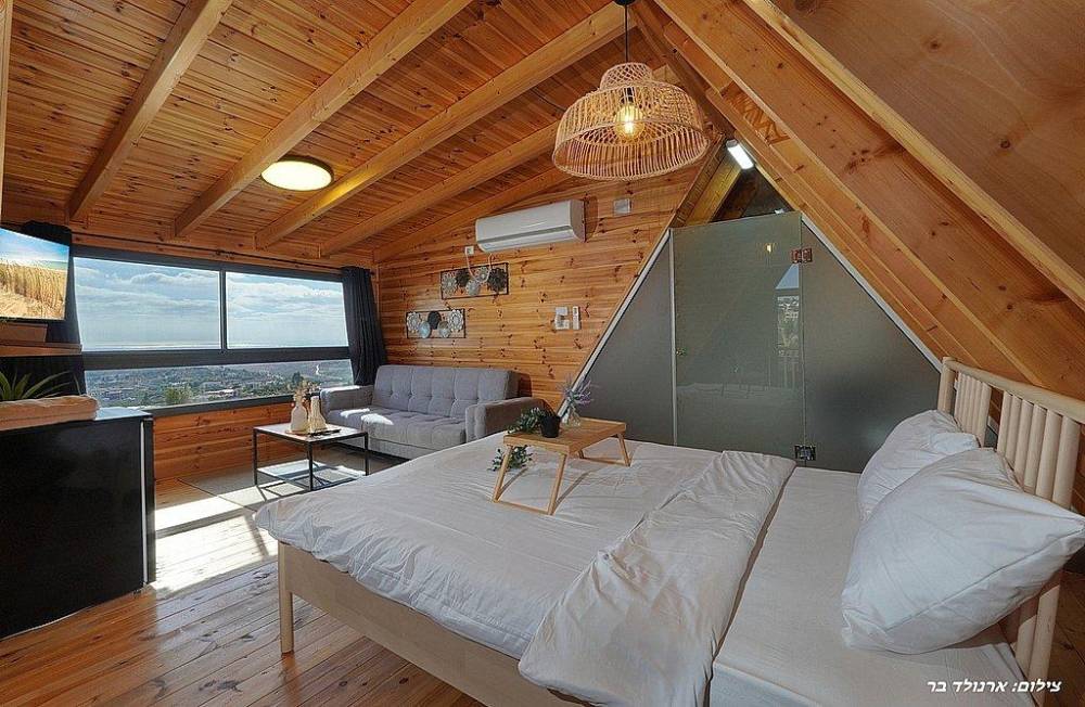 מיטה זוגית, מיזוג אוויר, טלוויזיה, פינת ישיבה, מטבחון וקומת גלריה עם מזרנים