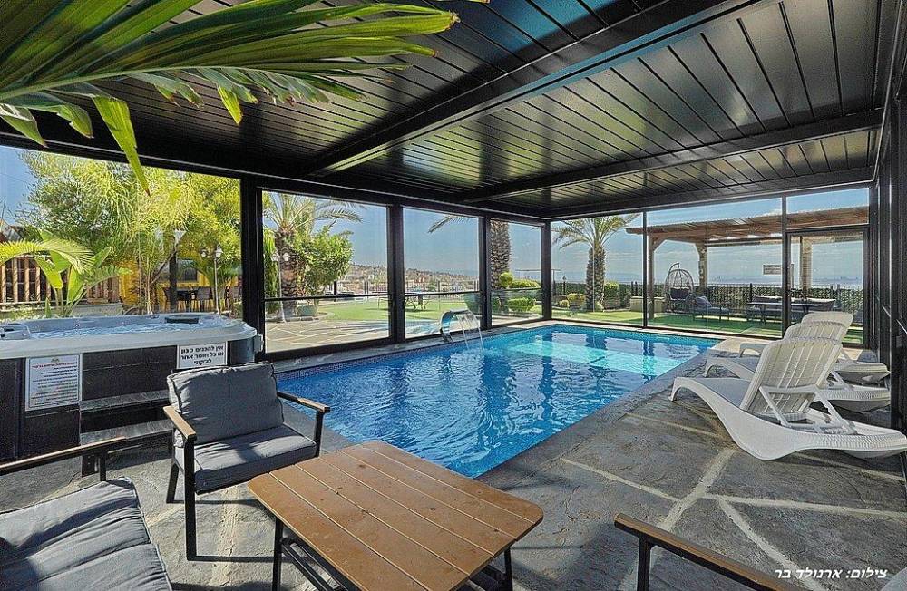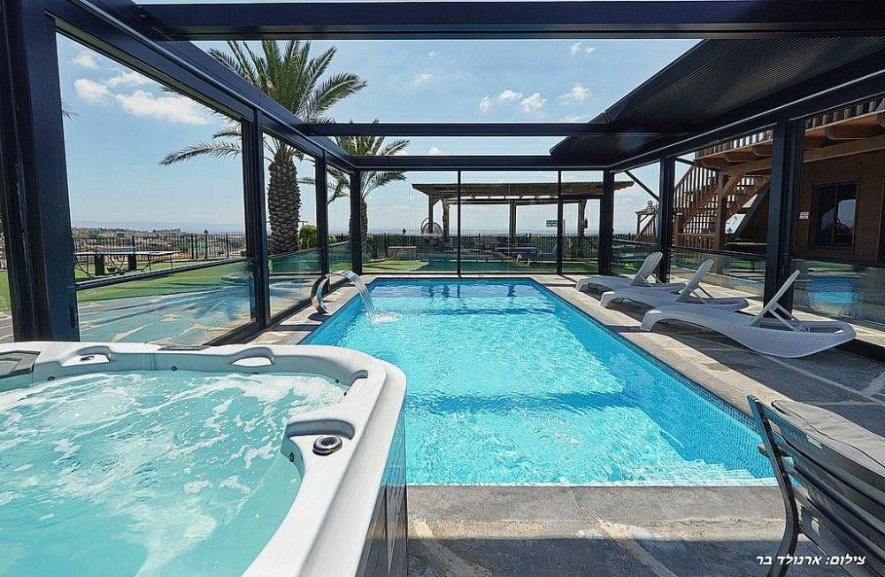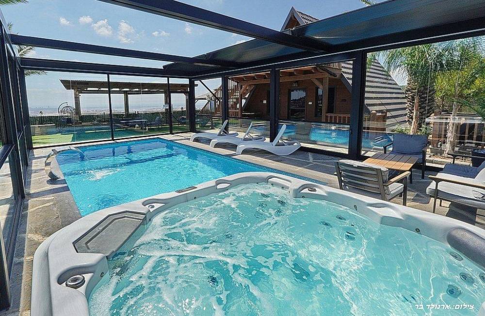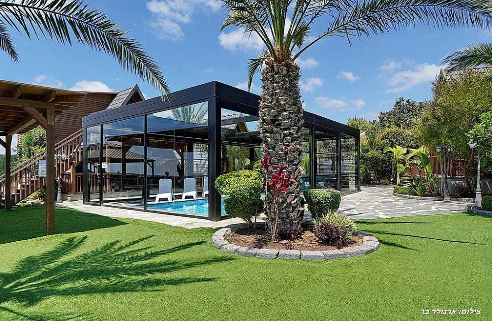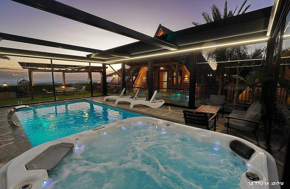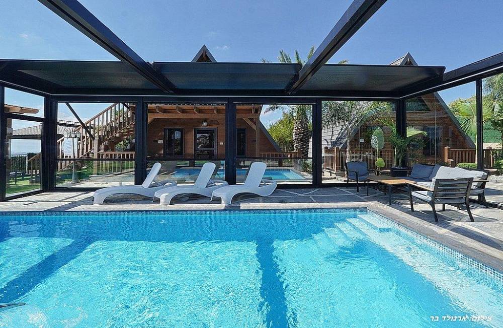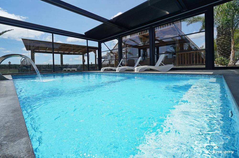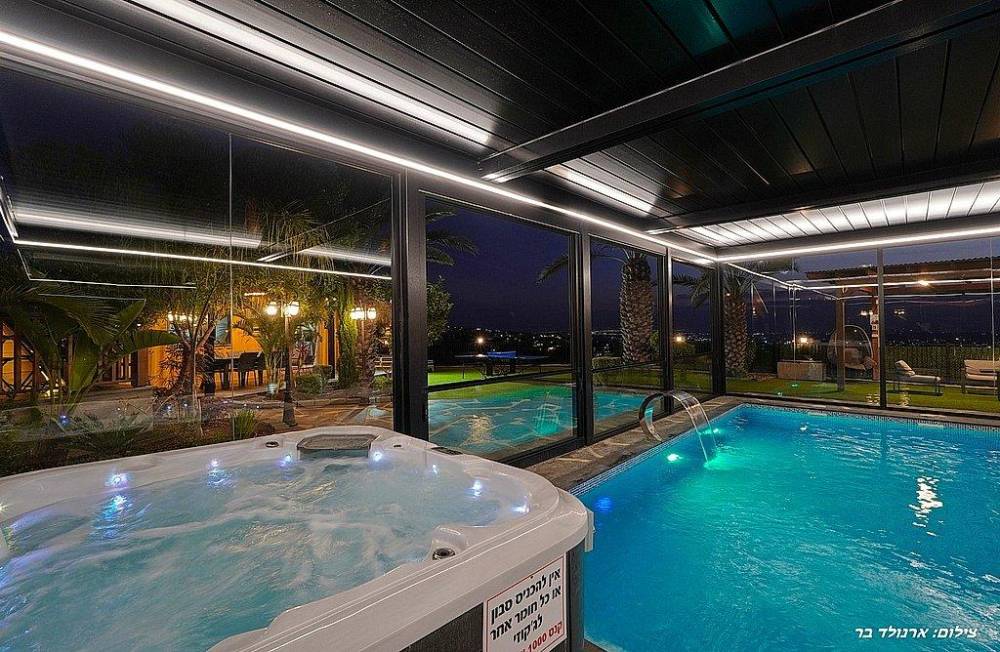 במתחם החיצוני תוכלו להנות מבריכת שחייה מחוממת ומקורה, שולחן פינג פונג ואף גם טרמפולינה לילדים.