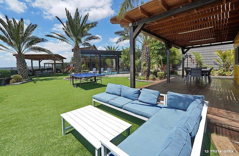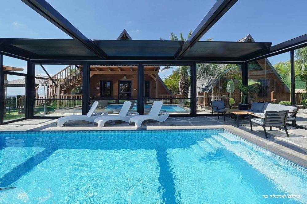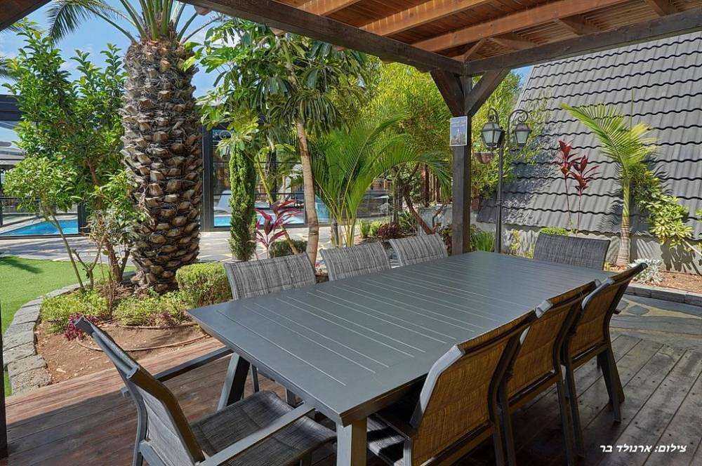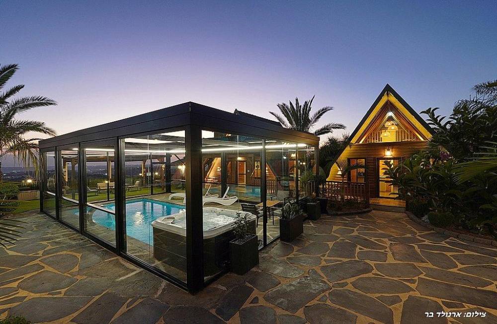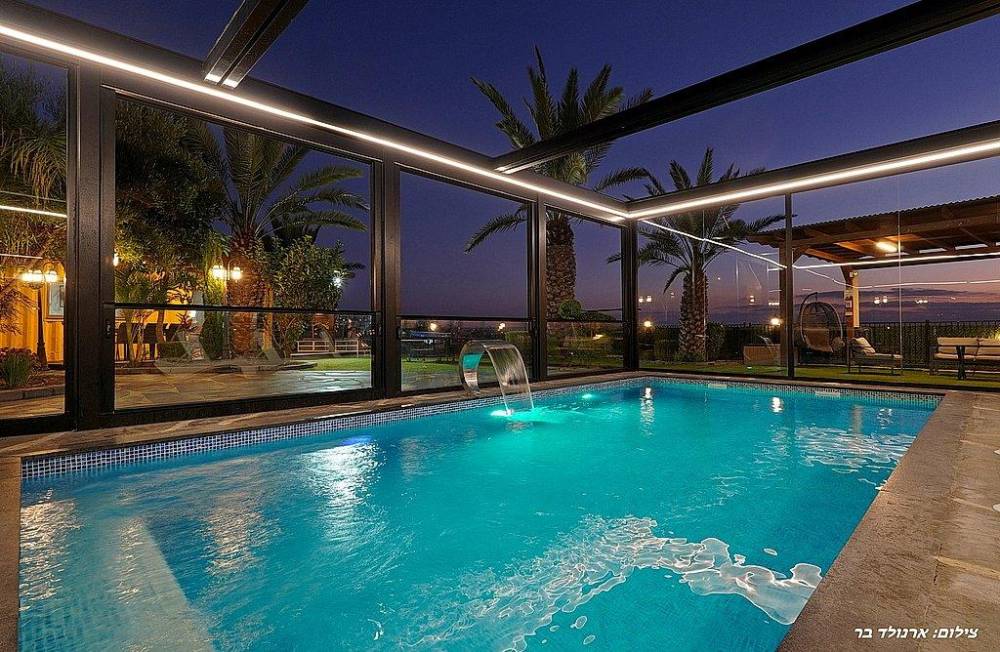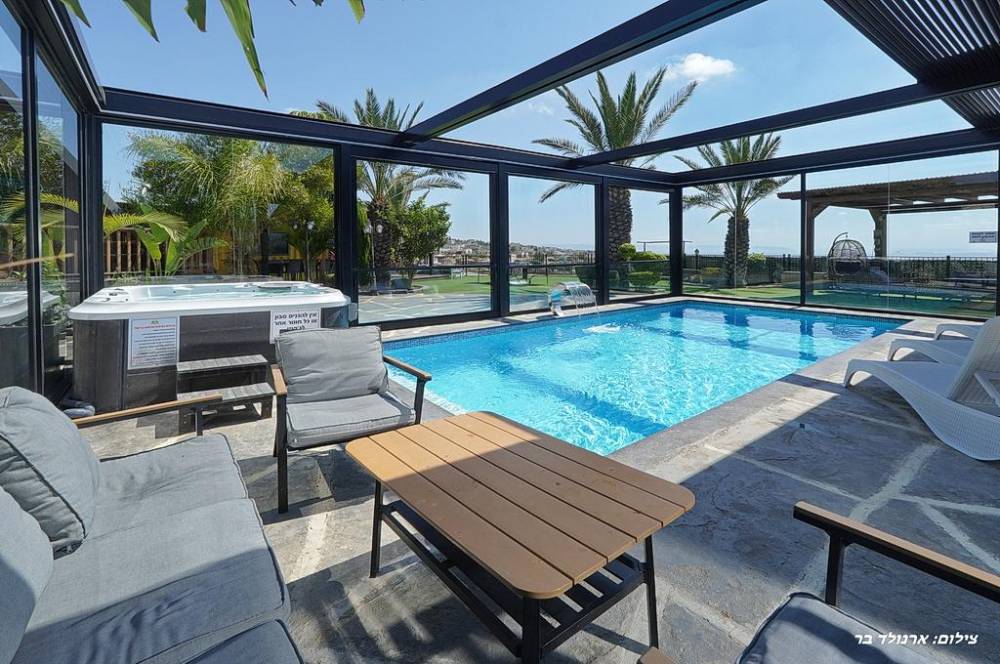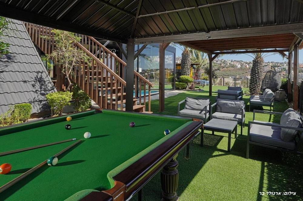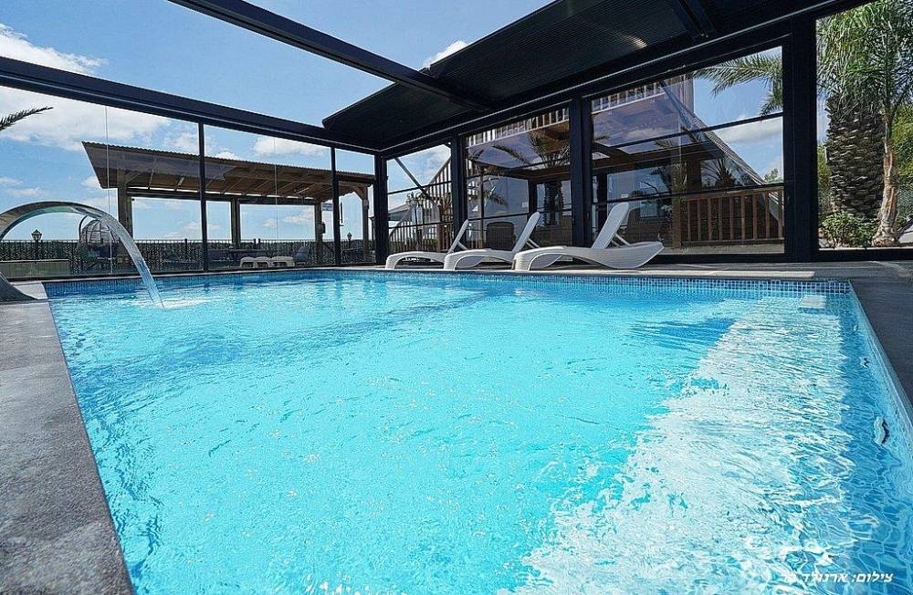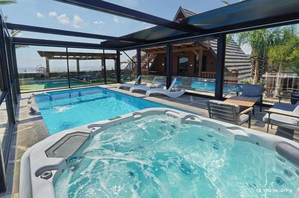 במתחם החיצוני תוכלו להנות מבריכת שחייה מחוממת ומקורה, שולחן פינג פונג ואף גם טרמפולינה לילדים.