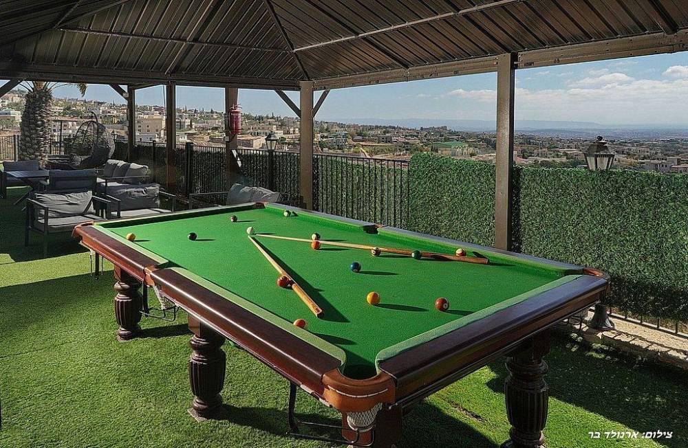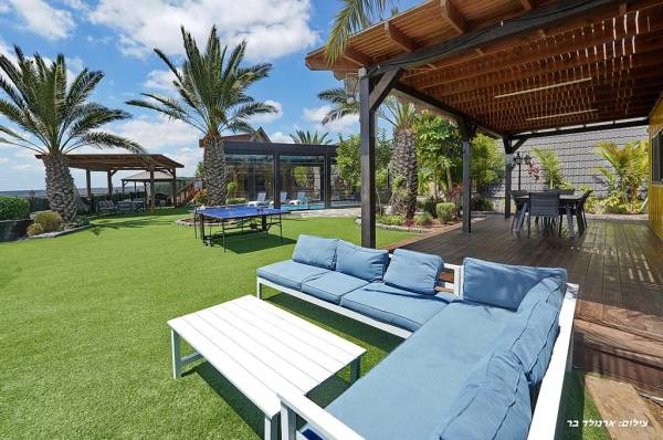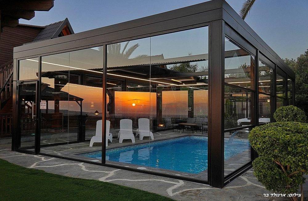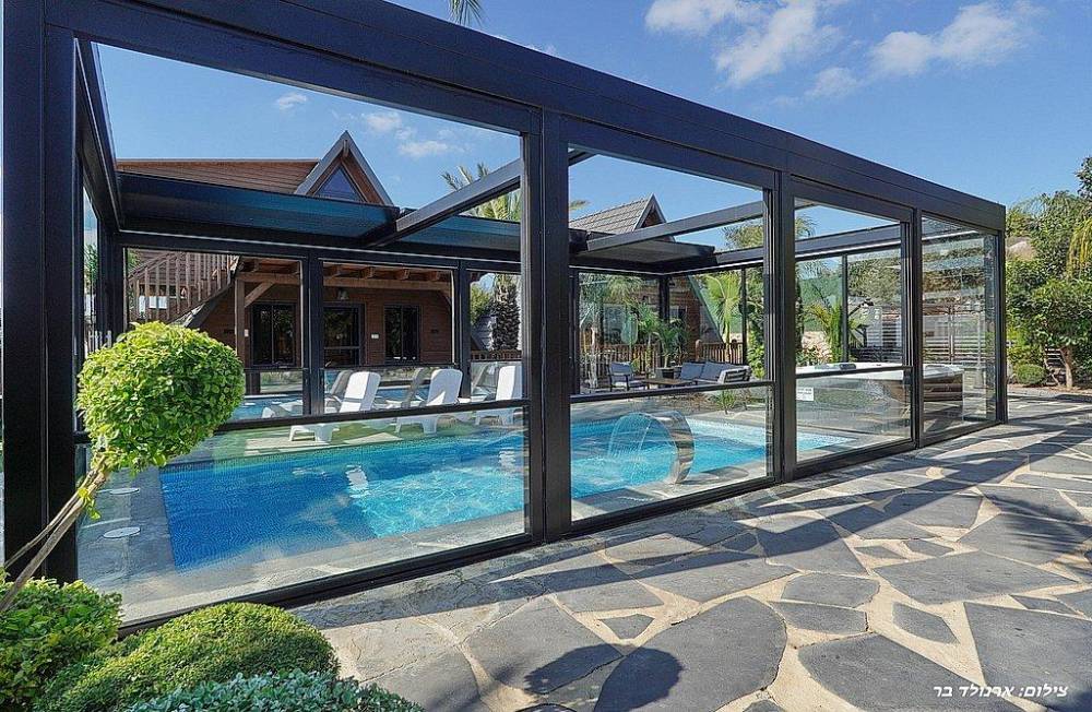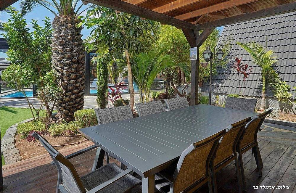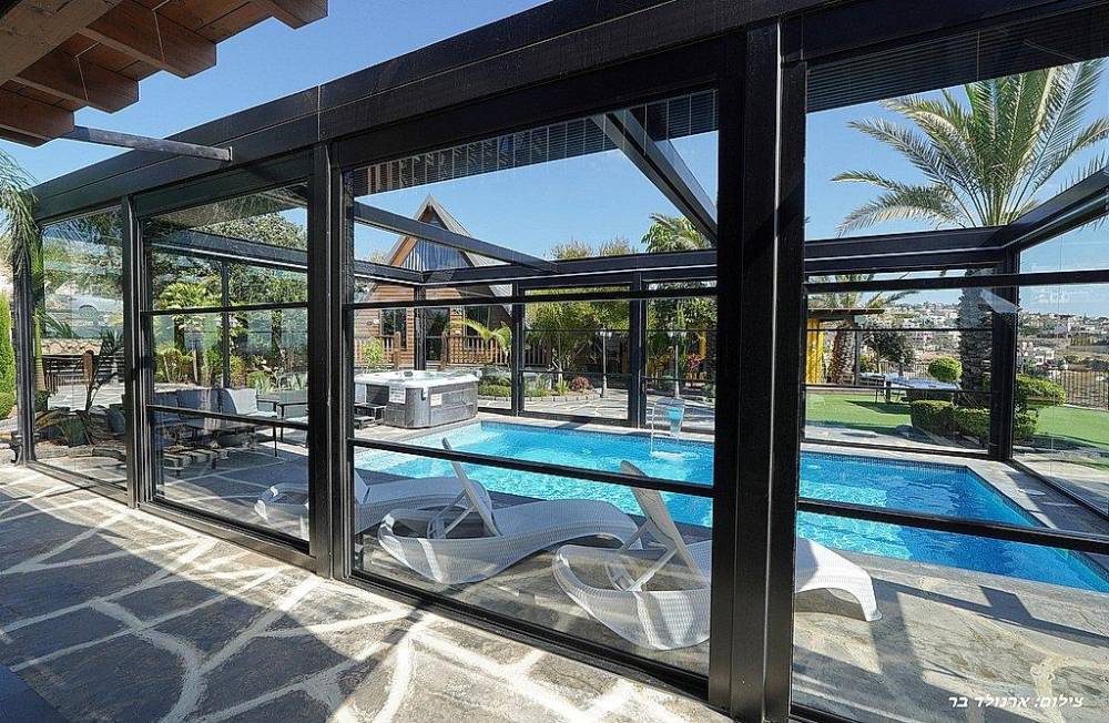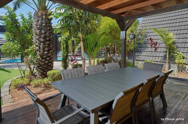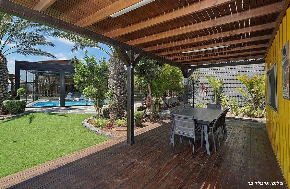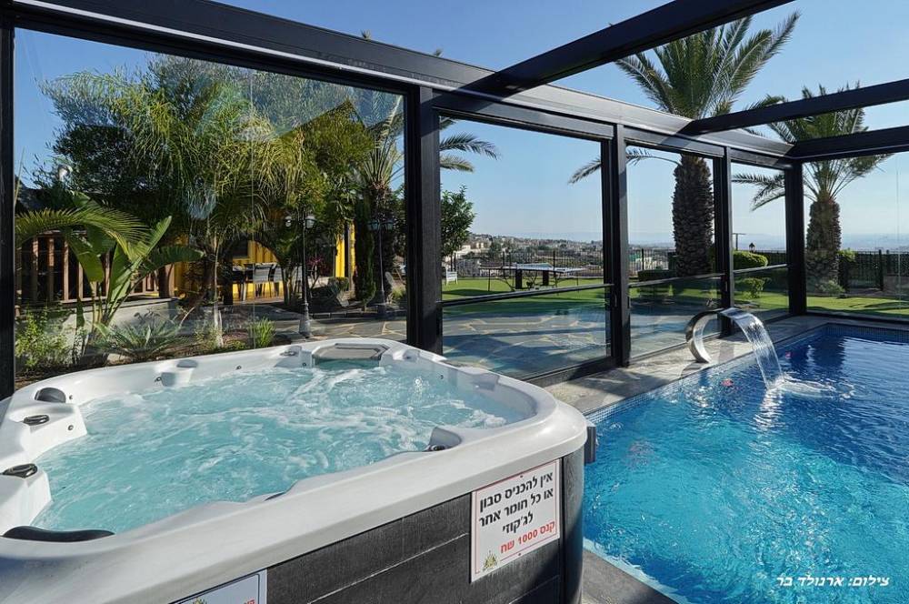 במתחם החיצוני תוכלו להנות מבריכת שחייה מחוממת ומקורה, שולחן פינג פונג ואף גם טרמפולינה לילדים.